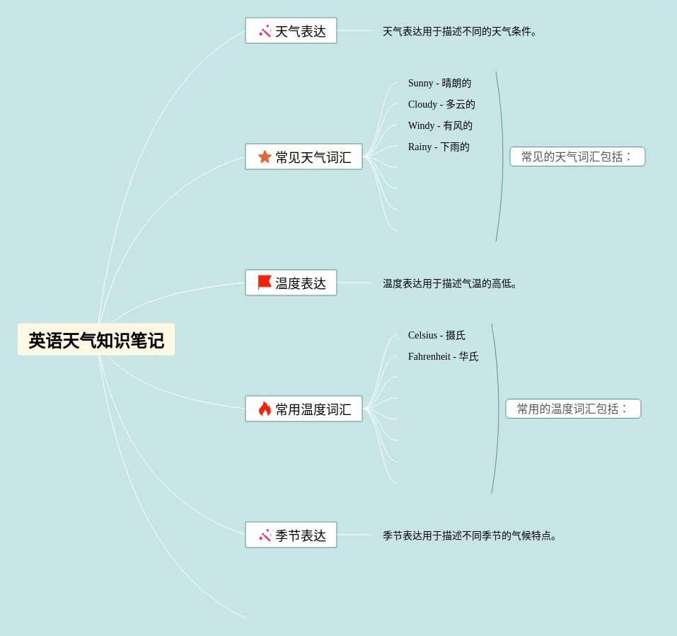 英语关于天气的思维导图(3个高清晰可打印) author: 百分思维 2023-10-08 14:33:15 阅读:191 点赞:0 3个英语关于天气的思维导图汇总,内容涵盖等0个知识点,每张思维导图都非常漂亮,每张图片均高清晰可打印。第1张,关于天气的思维导图可打印在线编辑预览第2张,关于天气的思维导图精选版在线编辑预览第3张,关于天气的思维导图附下载在线编辑预览第4张,关于天气的思维导图高清版在线编辑预览思维导图知识点说明: 下载地址1 下载地址2 下载地址3 Tags: 打印 导图 思维 天气 英语