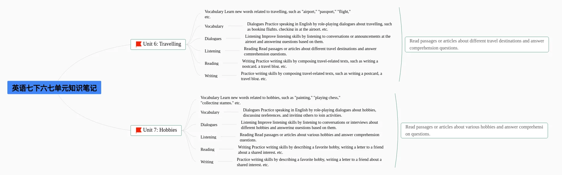 英语七下六七单元思维导图(4张附下载) author: 百分思维 2023-08-02 11:10:12 阅读:239 点赞:0 4张英语七下六七单元思维导图汇总,内容涵盖六单元、七单元等2个部分,每张思维导图都非常简单,每张图片均附下载。第1张,七下六七单元思维导图精选版在线编辑预览第2张,七下六七单元思维导图精选版在线编辑预览第3张,七下六七单元思维导图可打印在线编辑预览第4张,七下六七单元思维导图高清版在线编辑预览思维导图知识点说明:六单元:七单元: 下载地址1 下载地址2 下载地址3 Tags: 导图 思维 下载 英语