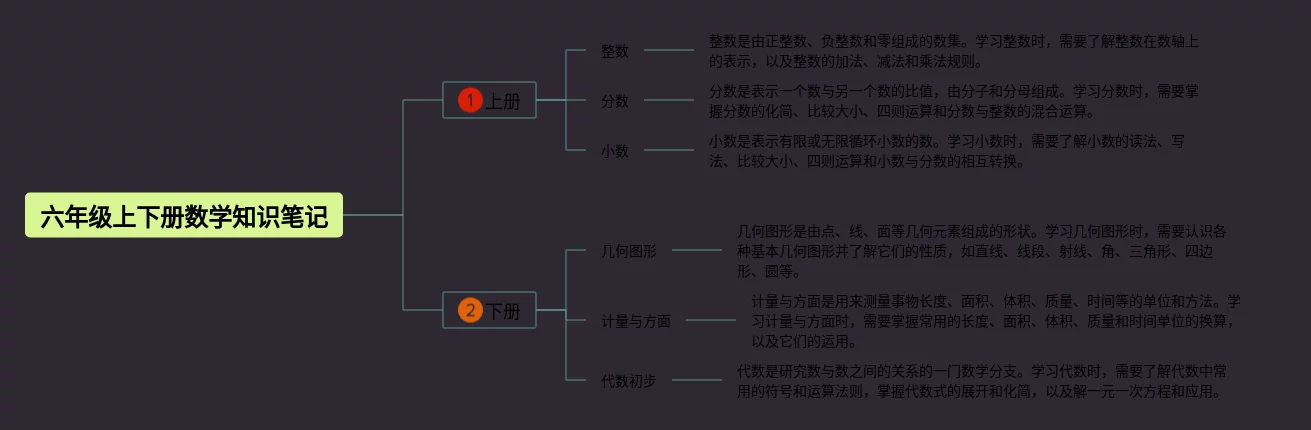 4张六年级上下册数学思维导图合集,内容涵盖上册、下册等2个部分,每张思维导图都非常简单,每张图片均精选版。