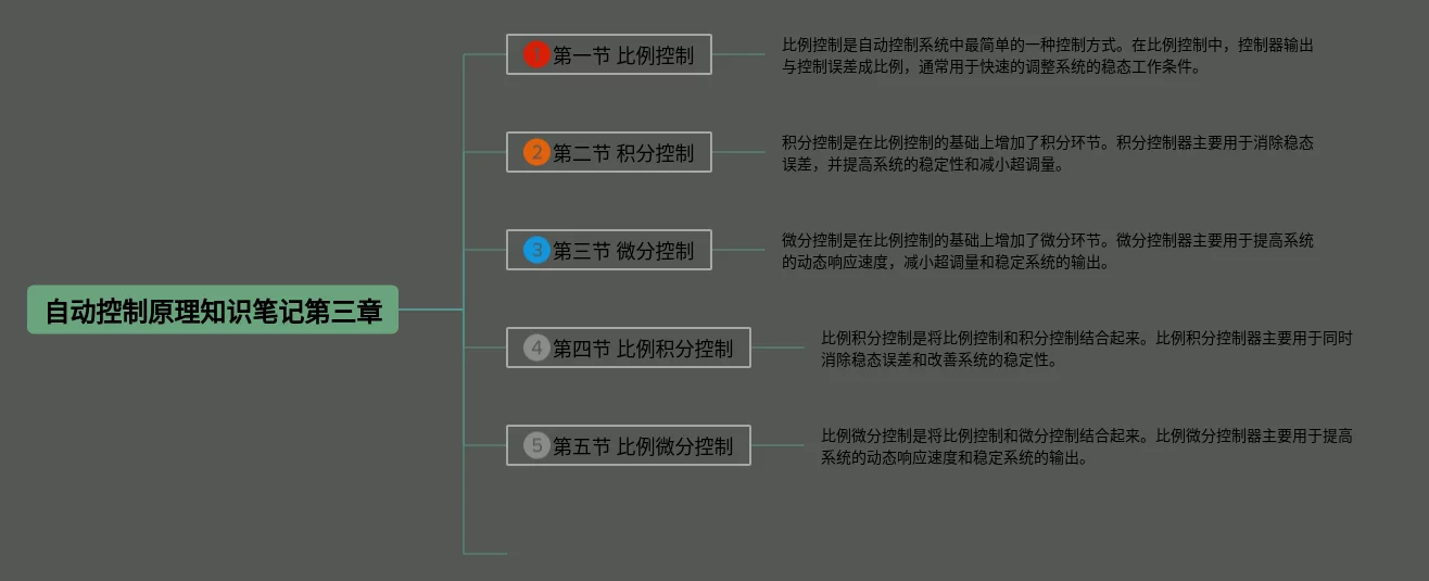 3个自动控制原理第三章思维导图合集,内容涵盖第一节控制系统性能指标、第二节PID控制器、第三节闭环控制系统等3个方面,每张思维导图都非常漂亮,每张图片均精选版。