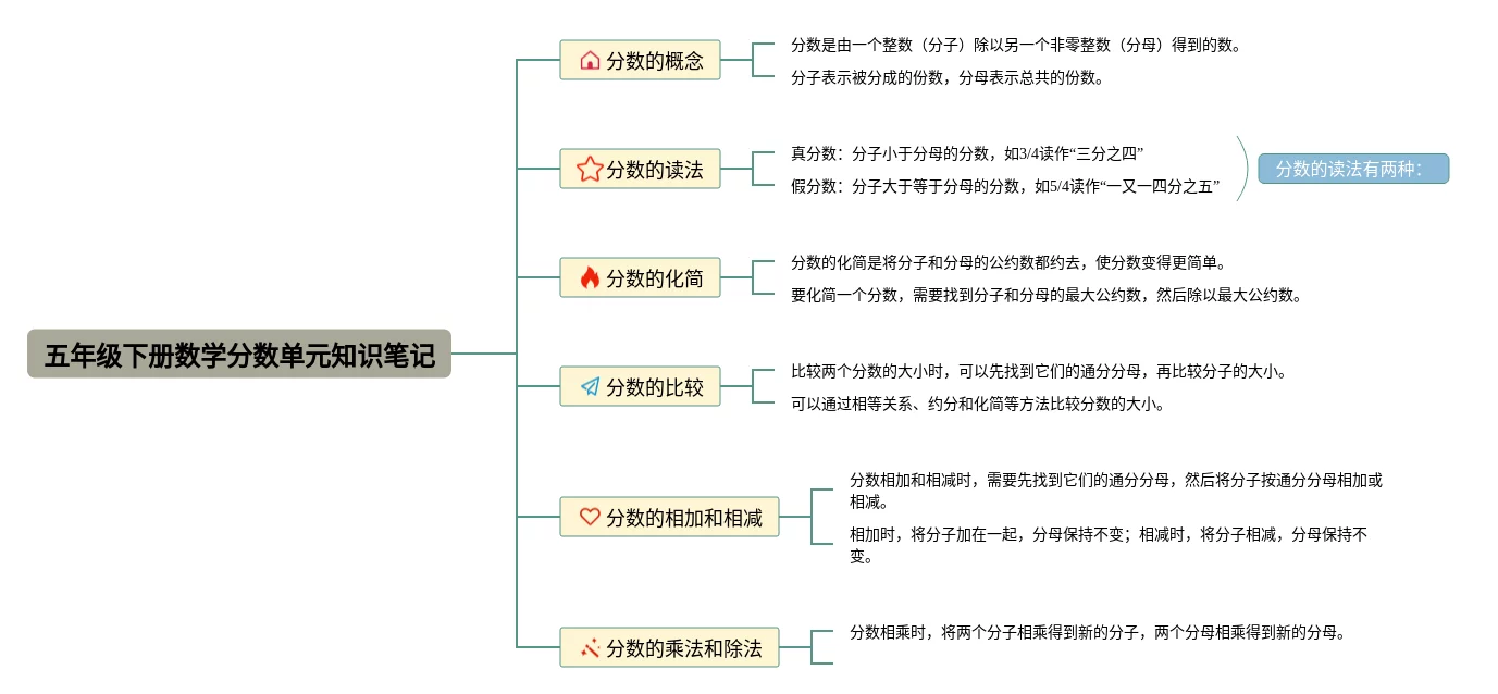第1张,五年级下册分数单元思维导图高清晰可打印