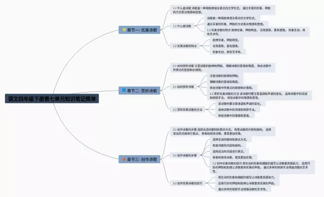3张四年级下册语文第七单元思维导图简单合集,内容涵盖章节 优美诗歌、章节 赏析诗歌、章节 创作诗歌等3个要点,每张思维导图都非常漂亮,每张图片均可下载。