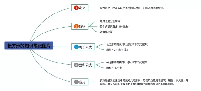 3张长方形思维导图怎么画图片汇总,内容涵盖定义、特征、周长公式、面积公式、应用等5个方面,每张思维导图都非常简单,每张图片均高清版。