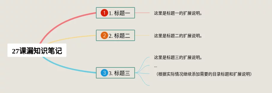 27课漏思维导图(3张附打印高清版) author: 百分思维 2023-08-14 11:38:34 阅读:71 点赞:0 3张27课漏思维导图汇总,内容涵盖目录、第一部分主题1、第二部分主题2、第三部分主题3等4个要点,每张思维导图都非常漂亮,每张图片均附打印高清版。第1张,27课漏思维导图附打印高清版在线编辑预览第2张,27课漏思维导图附打印高清版在线编辑预览第3张,27课漏思维导图高清版在线编辑预览第4张,27课漏思维导图可打印在线编辑预览思维导图知识点说明:目录:第一部分:主题1第一部分主题1:这里是第一部分的内容第二部分主题2:这里是第二部分的内容第三部分主题3:这里是第三部分的内容 下载地址1 下载地址2 下载地址3 Tags: 打印 导图 思维