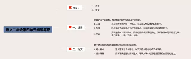二年级第四单元思维导图合集,内容涵盖目录、拼音、短文等3个要点,每张思维导图都非常漂亮,每张图片均高清晰可打印。