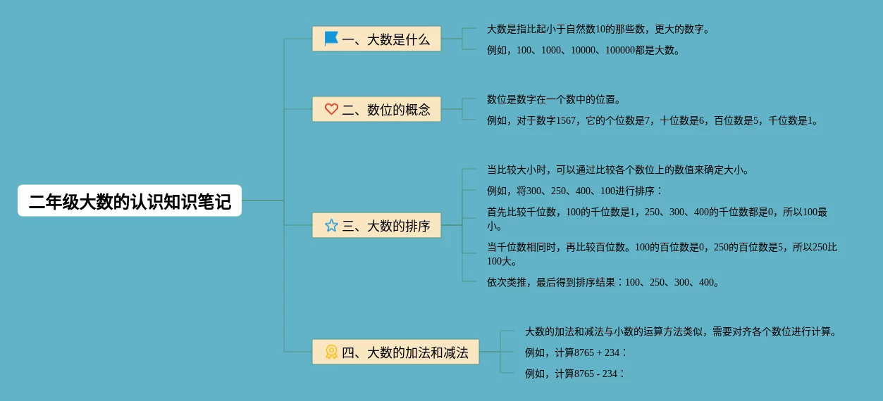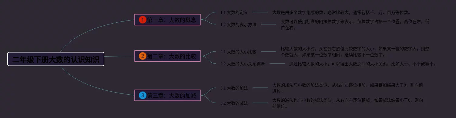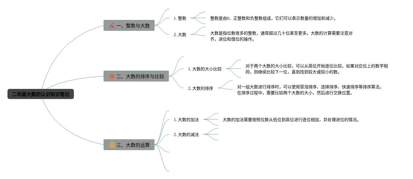 25张二年级大数的认识思维导图汇总,二年级大数的认识思维导图,内容涵盖整数与大数、大数的排序与比较、大数的运算等3个方面,25张附下载,每张思维导图都非常漂亮,每张图片均附下载。