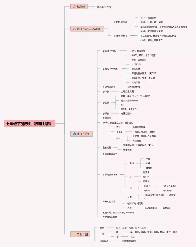 七年级历史隋唐时期思维导图(20张附打印高清版)