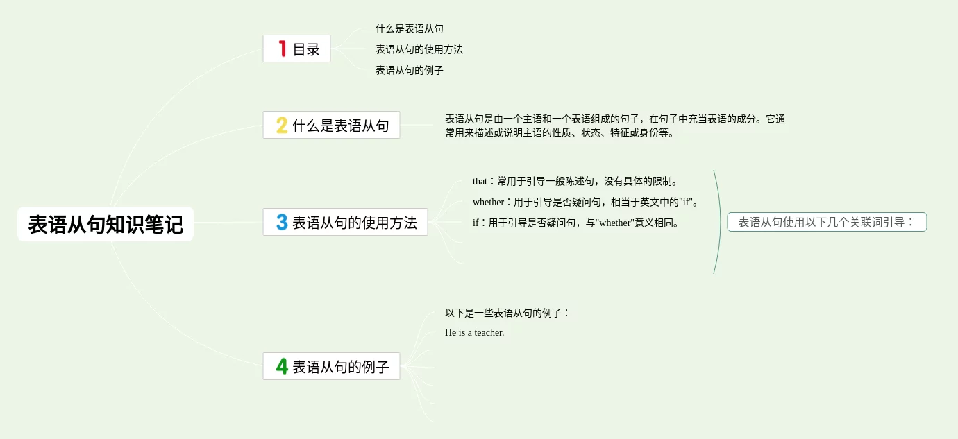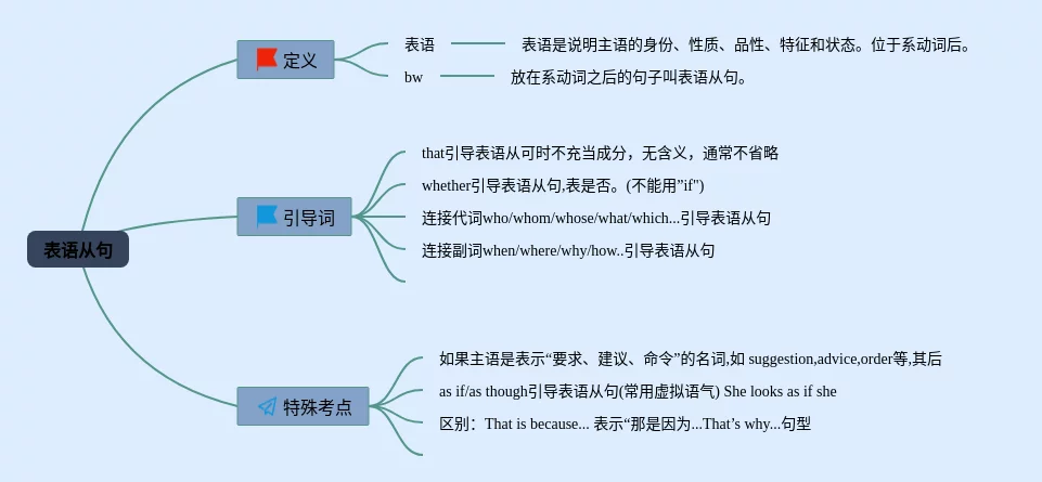 21张表语从句思维导图合集,表语从句思维导图,内容涵盖同位语从句等1个方面,21张可打印,每张思维导图都非常简单,每张图片均可打印。