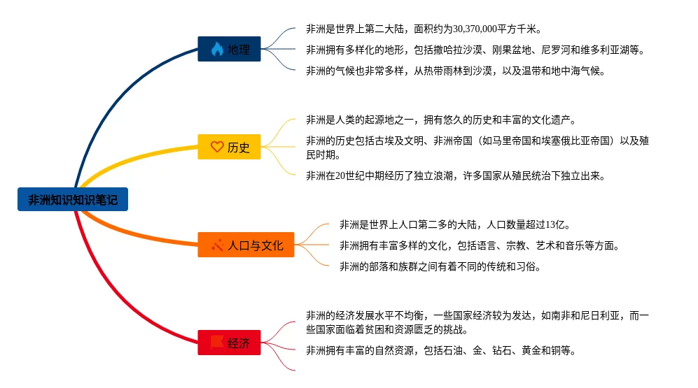 25张非洲知识思维导图合集,非洲知识思维导图,内容涵盖地理、历史、文化等3个知识点,25张精选版,每张思维导图都非常清晰,每张图片均精选版。