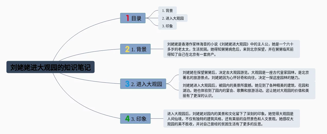 20张刘姥姥思维导图合集,刘姥姥思维导图,内容涵盖目录、1. 背景、2. 进入大观园、3. 印象等4个要点,20张高清版,每张思维导图都非常清晰,每张图片均高清版。
