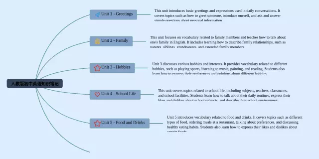 人教版初中思维导图合集,人教版初中英语思维导图,内容涵盖一般现在时、一般过去时、一般将来时、过去完成时、现在完成时等8个要点,24张可打印,每张思维导图都非常漂亮,每张图片均可打印。