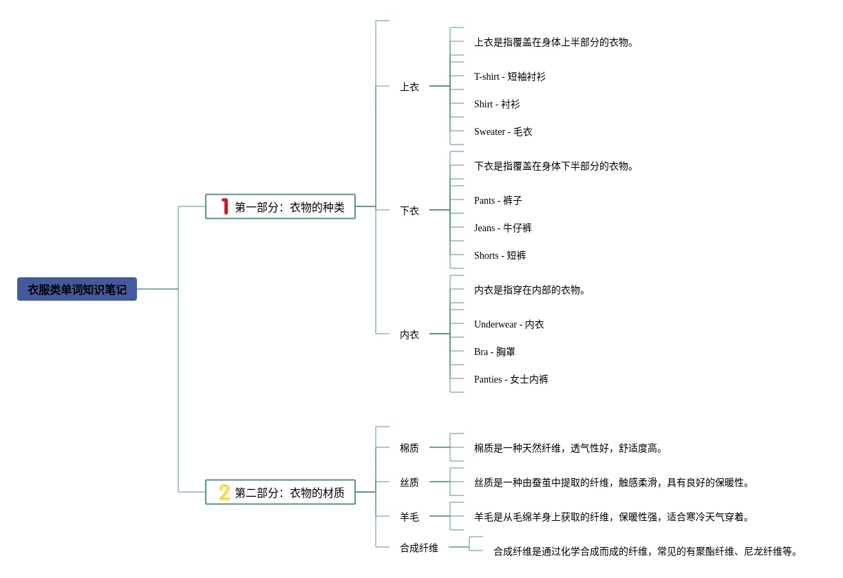 英语思维导图衣服类(21张高清晰可打印)