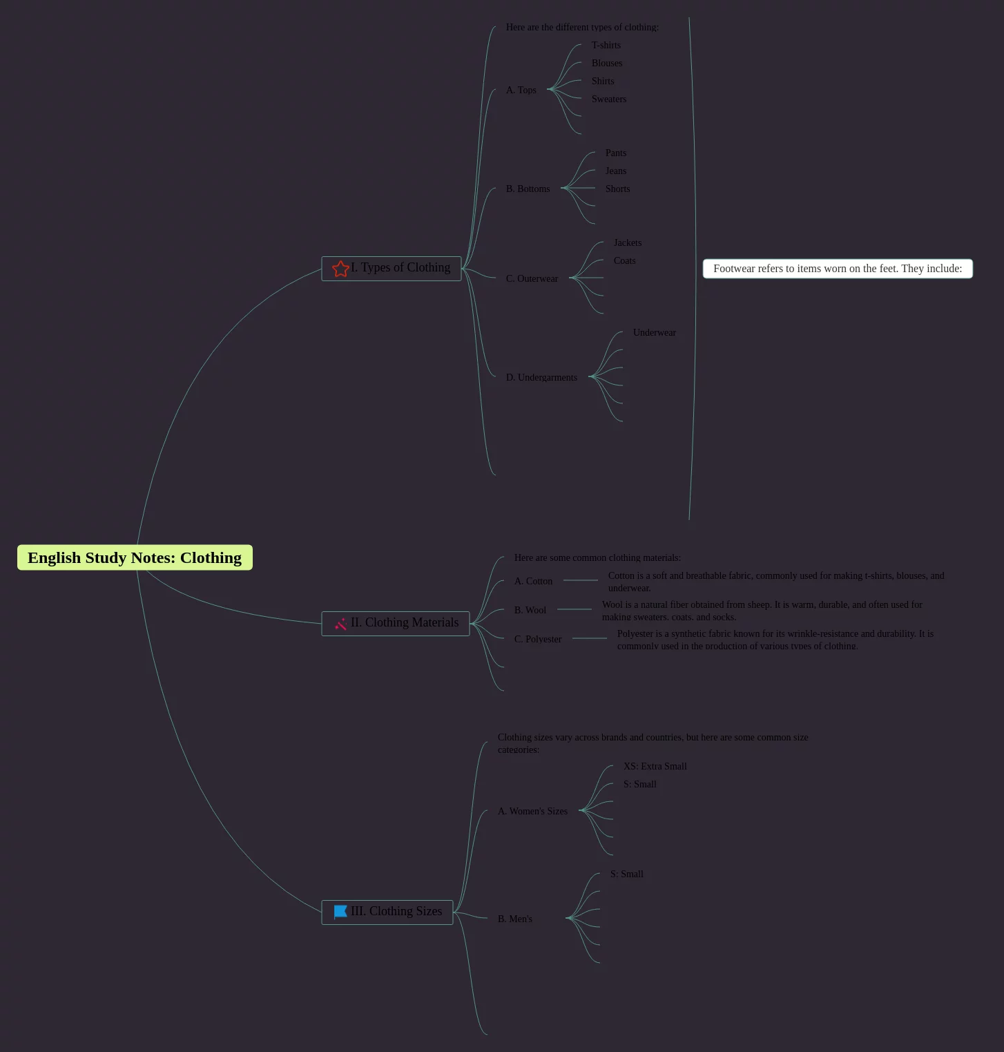 21张英语思维导图衣服类汇总,英语思维导图衣服类,内容涵盖1. 化学工业的分类、2. 化学工业生产的特点、4. 网站补充、5. 化工安全相关法律法规、6. 化工安全管理的基本原则等15个要点,21张高清晰可打印,每张思维导图都非常清晰,每张图片均高清晰可打印。