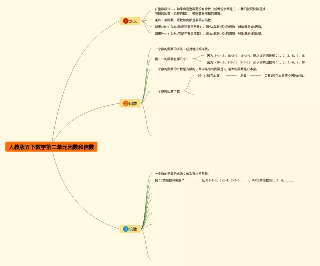 22张五年级下册第二单元因数和倍数思维导图汇总,五年级下册第二单元因数和倍数思维导图,内容涵盖定义、因数、倍数的个数、找一个数的因数倍数、表示一个数的因数倍数等4个知识点,22张可打印,每张思维导图都非常清晰,每张图片均可打印。