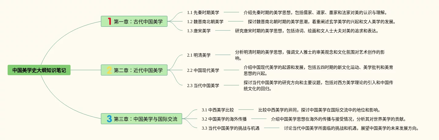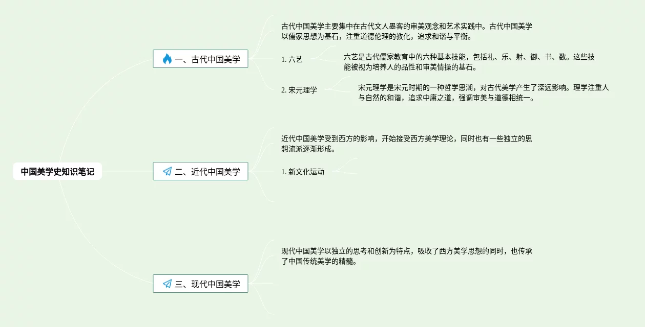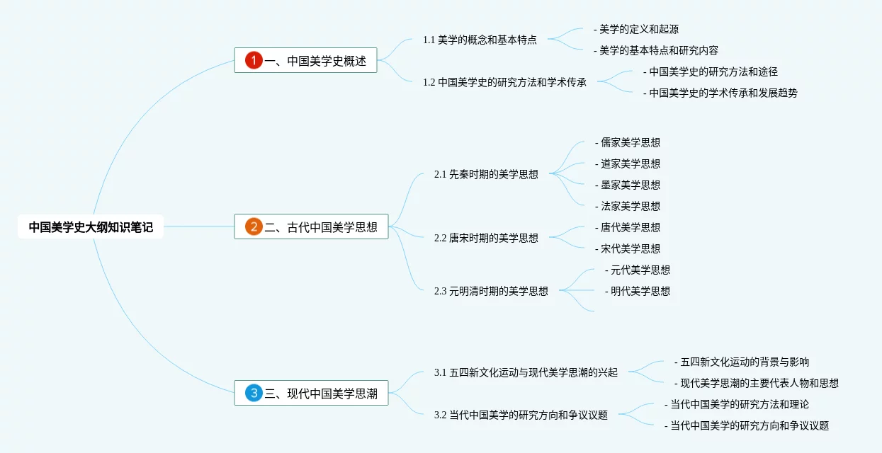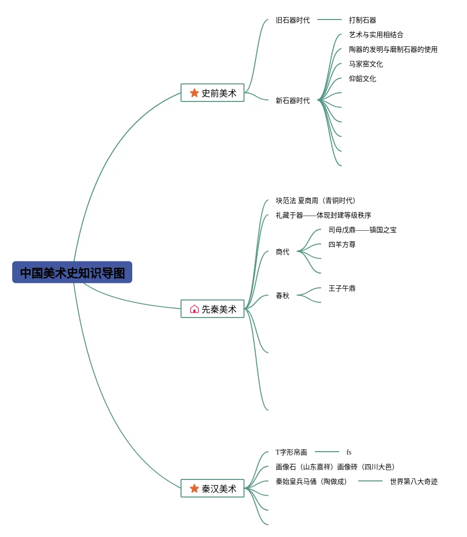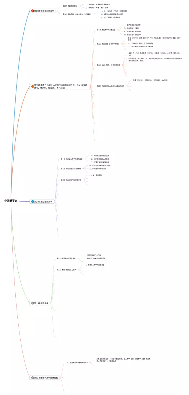 22张中国美学史大纲思维导图合集,中国美学史大纲思维导图,内容涵盖第一编 史前及先秦美术.、第二编 秦汉美术、第三编 魏晋南北朝朝隋唐美术、第四编 五代宋元美术、第五编 明清美术等6个方面,22张高清晰可打印,每张思维导图都非常简单,每张图片均高清晰可打印。