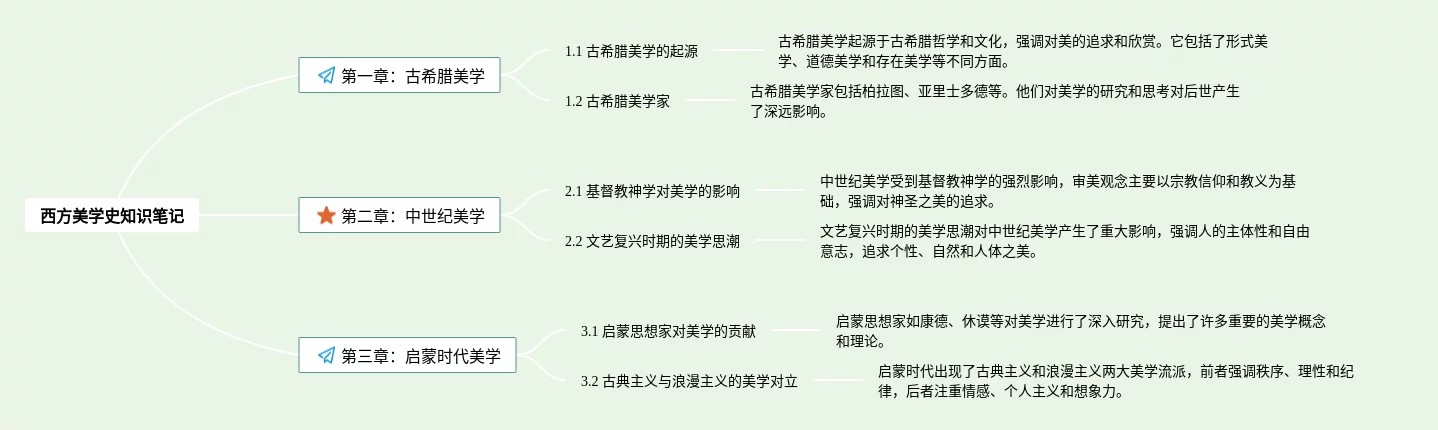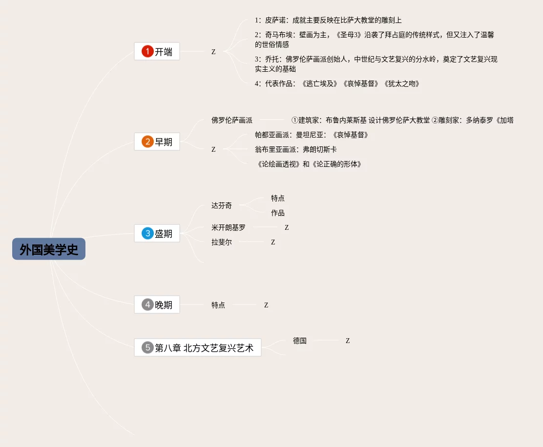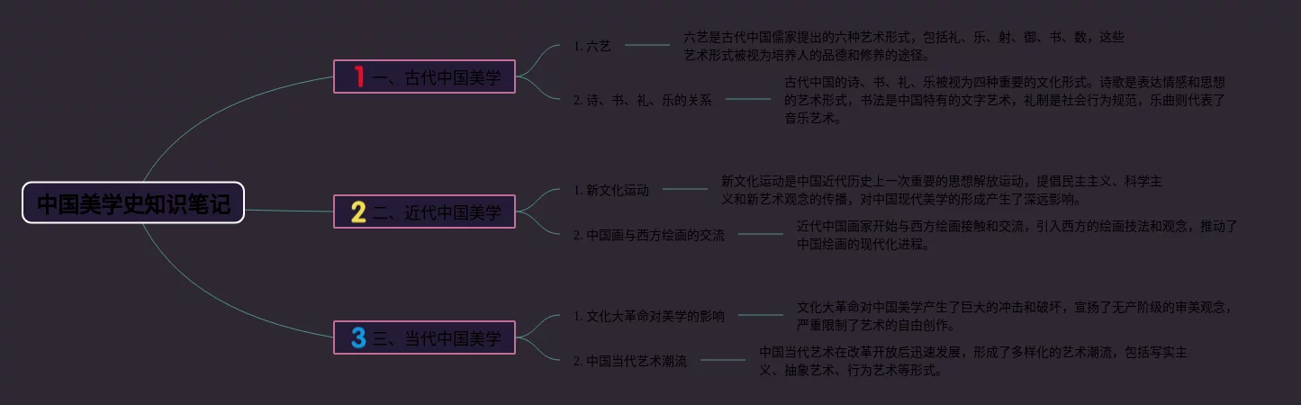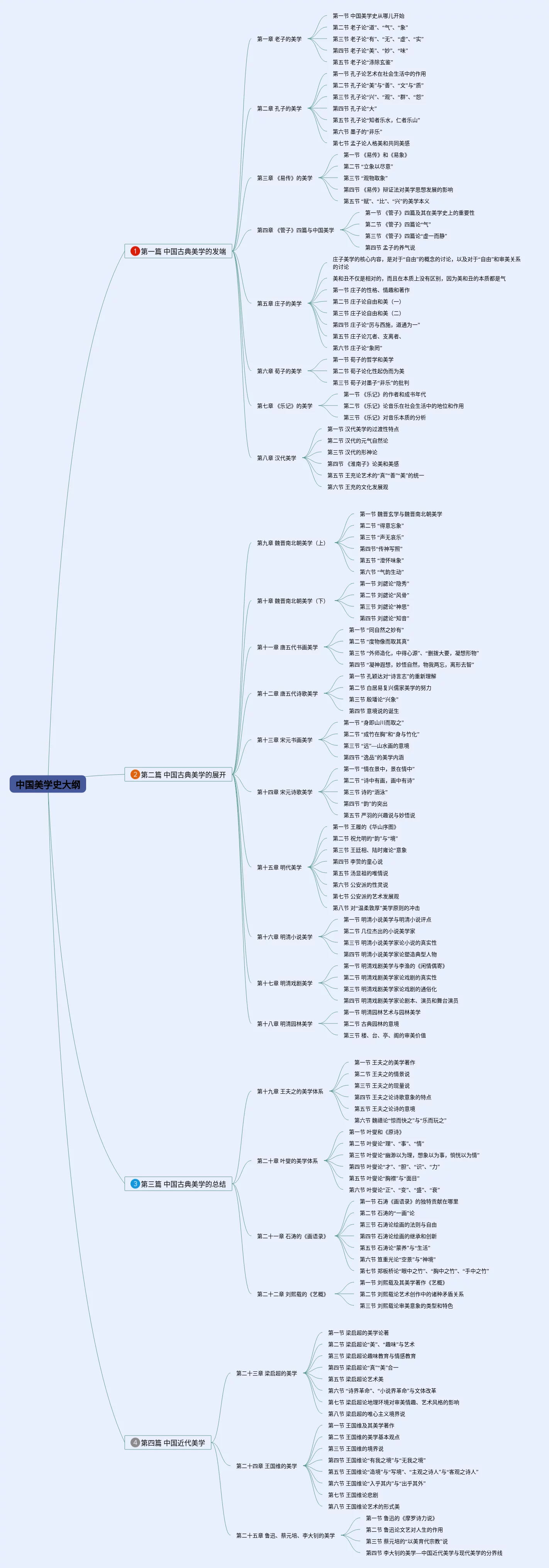 22张中国美学史大纲思维导图合集,中国美学史大纲思维导图,内容涵盖第一编 史前及先秦美术.、第二编 秦汉美术、第三编 魏晋南北朝朝隋唐美术、第四编 五代宋元美术、第五编 明清美术等6个方面,22张高清晰可打印,每张思维导图都非常简单,每张图片均高清晰可打印。