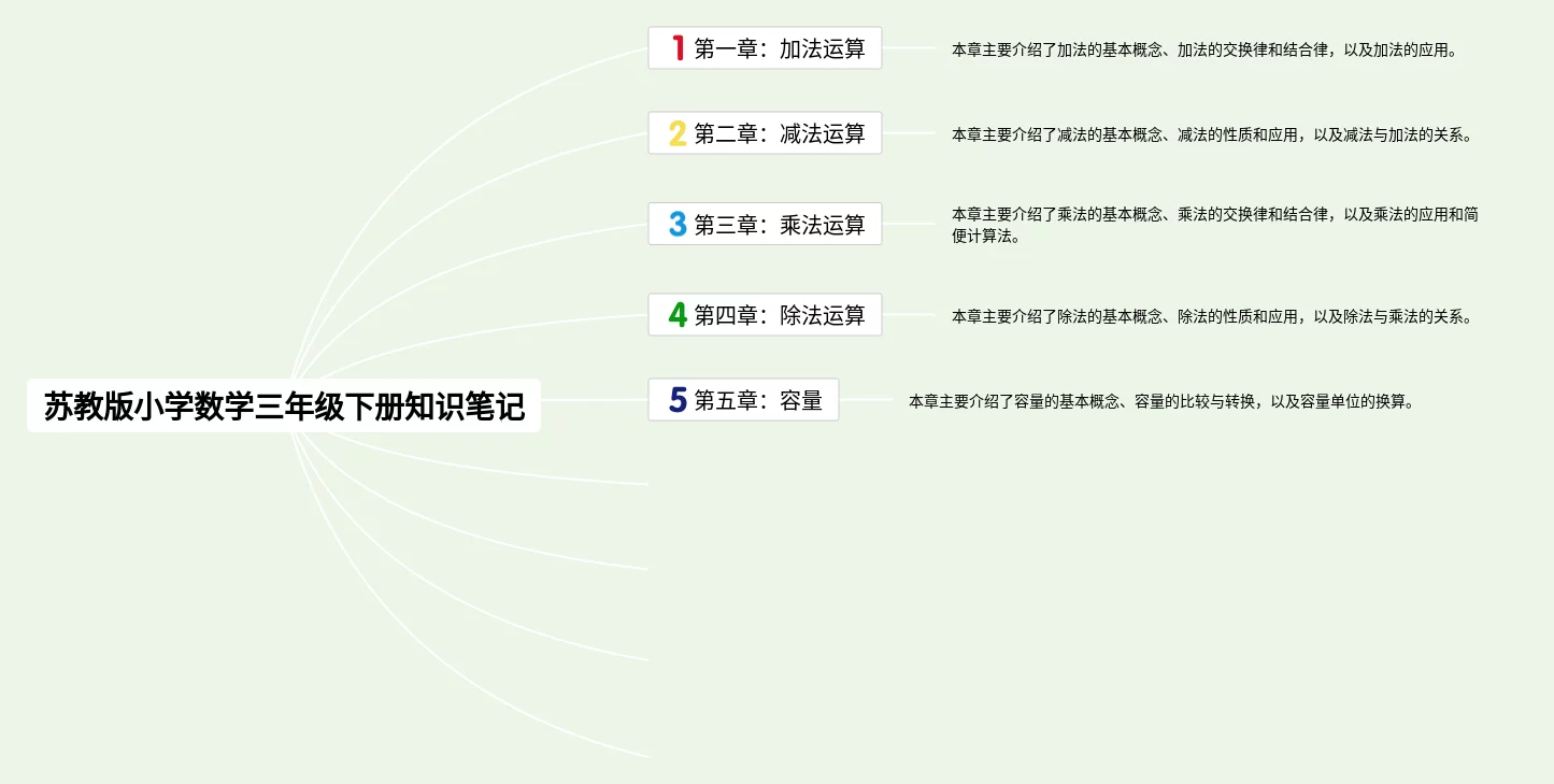 苏教版小学三年级下册思维导图合集,苏教版小学数学三年级下册思维导图,内容涵盖1.可爱的生灵、2.寓言故事、3.中华优秀传统文化、4.观察与发现、5.大胆想象等8个要点,22张可打印,每张思维导图都非常简单,每张图片均可打印。