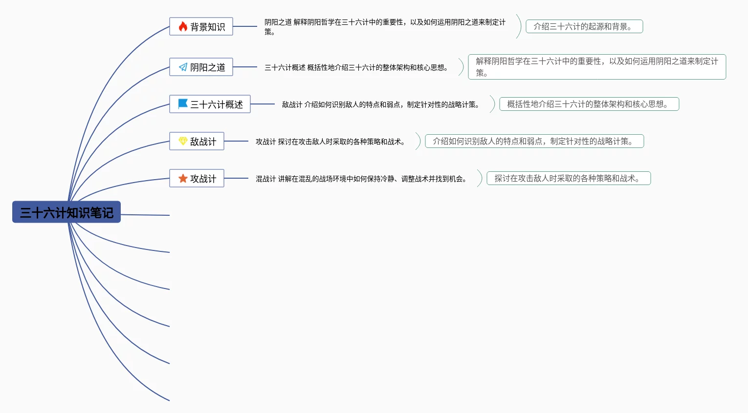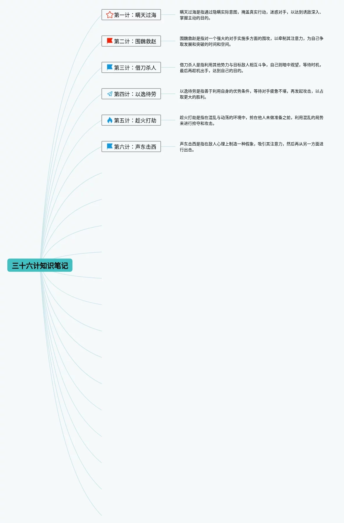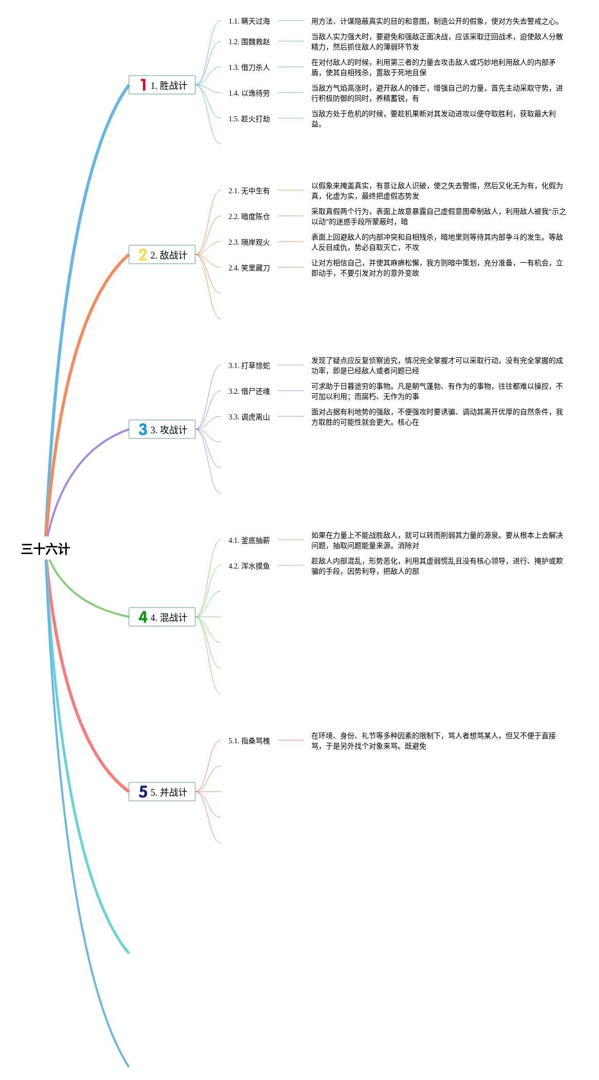 23张三十六计的思维导图汇总,三十六计的思维导图,内容涵盖第一套 胜战计、第二套 敌战计、第三套 攻战计、第四套 混战计、第五套 并战计等6个方面,23张值得收藏,每张思维导图都非常简单,每张图片均值得收藏。
