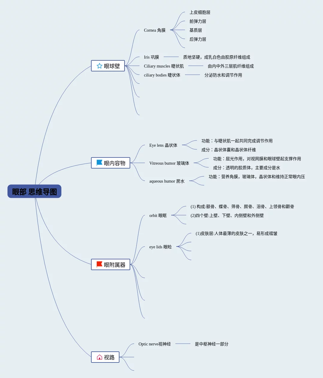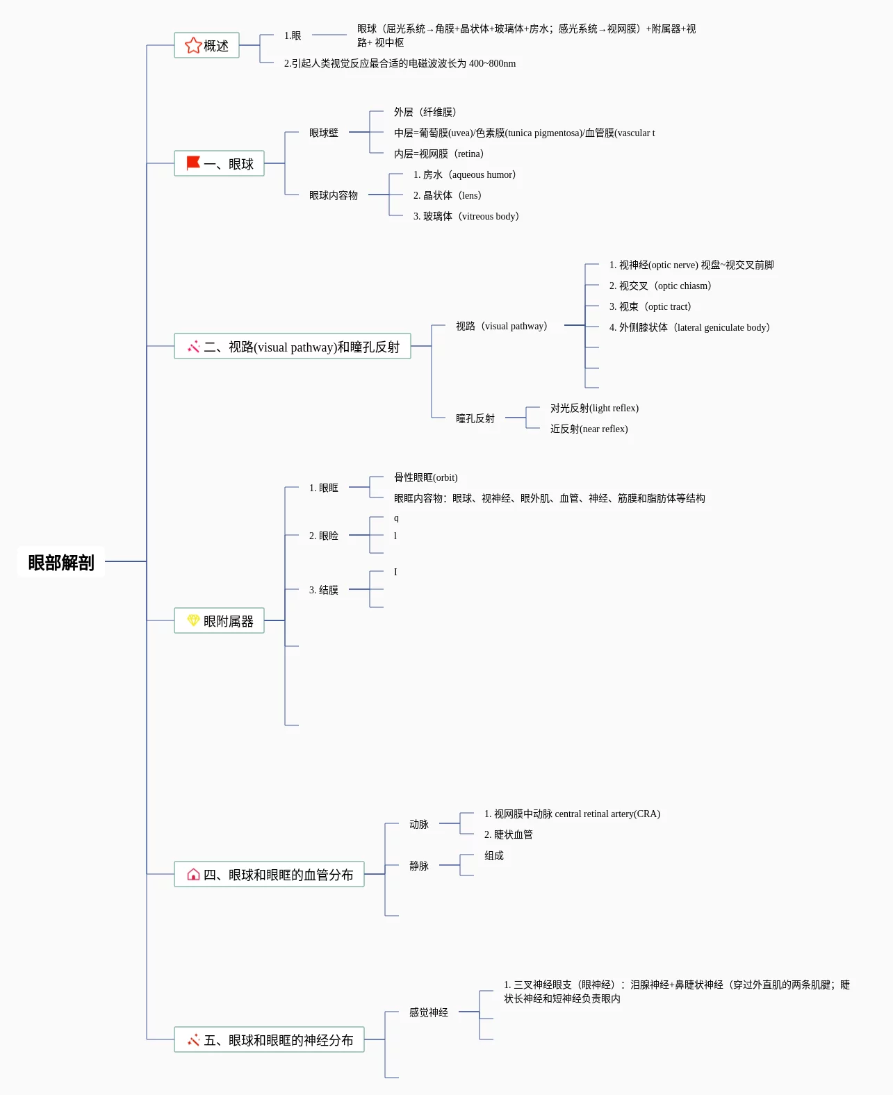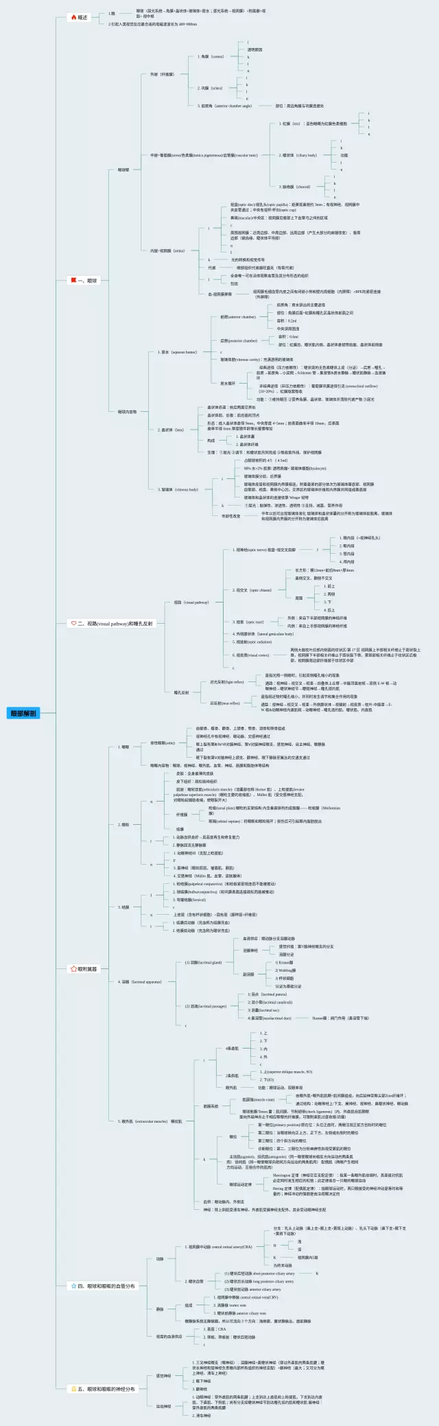 20张眼部思维导图汇总,眼部思维导图,内容涵盖概述、眼球、视路(visual pathway)和孔反射、眼附属器、眼球和眼眶的血管分布等6个要点,20张附下载,每张思维导图都非常清晰,每张图片均附下载。