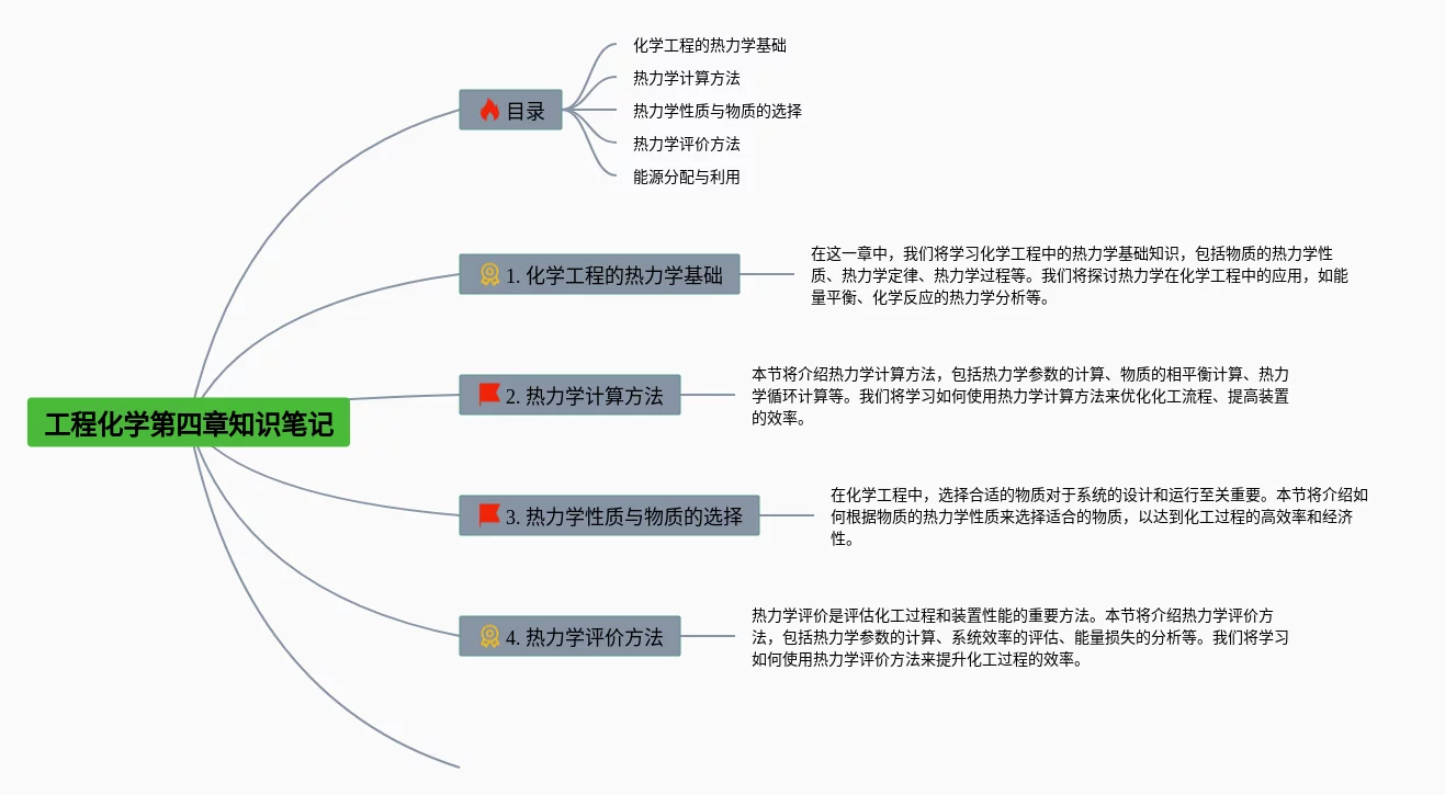 20张工程化学第四章思维导图汇总,工程化学第四章思维导图,内容涵盖目录、1. 化学工程的热力学基础、2. 热力学计算方法、3. 热力学性质与物质的选择、4. 热力学评价方法等6个方面,20张高清版,每张思维导图都非常简单,每张图片均高清版。