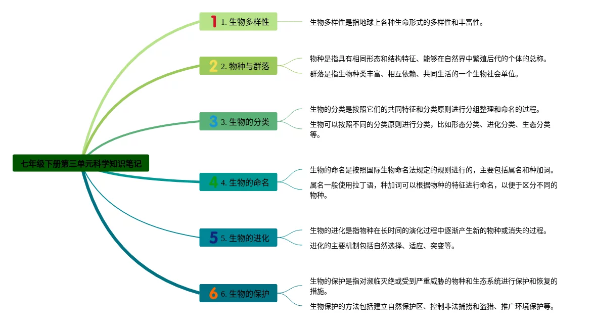 23张七年级科学下册第三单元思维导图汇总,七年级科学下册第三单元思维导图,内容涵盖1. 生物多样性、2. 物种与群落、3. 生物的分类、4. 生物的命名、5. 生物的进化等6个要点,23张可下载,每张思维导图都非常清晰,每张图片均可下载。