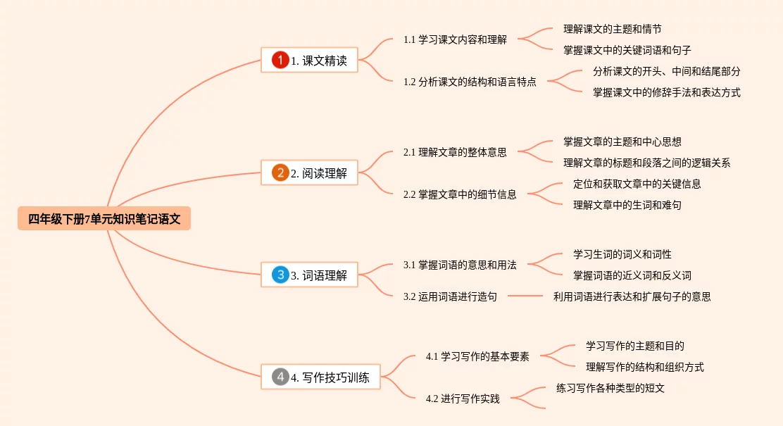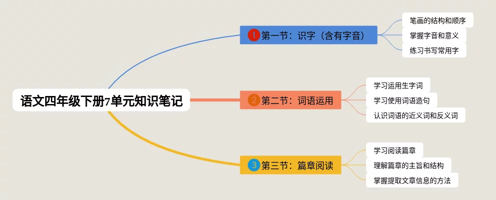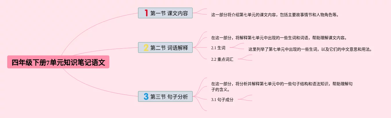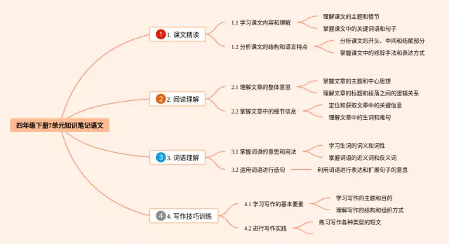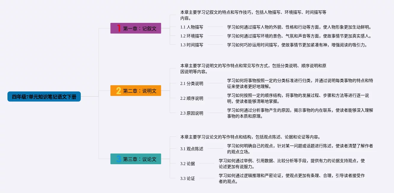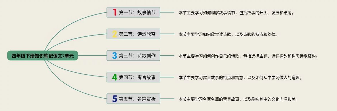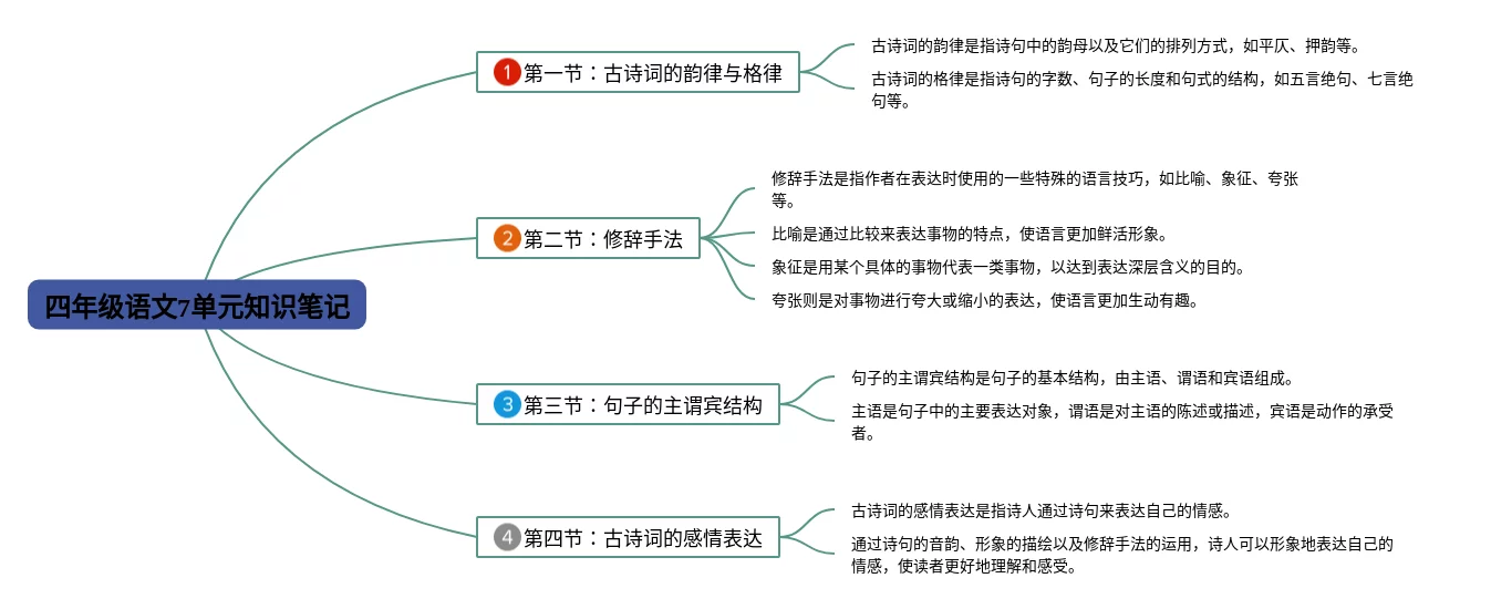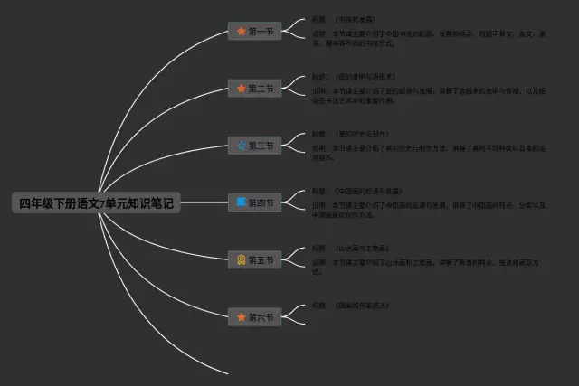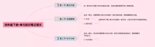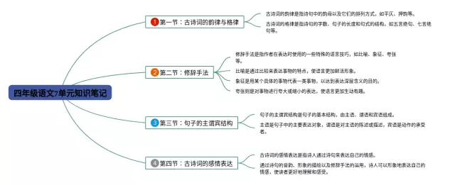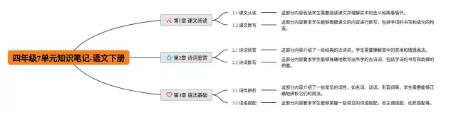 24张四年级下册7单元思维导图合集,四年级下册7单元思维导图,内容涵盖第1章 课文阅读、第2章 诗词鉴赏、第3章 语法基础等3个要点,24张附打印高清版,每张思维导图都非常清晰,每张图片均附打印高清版。
