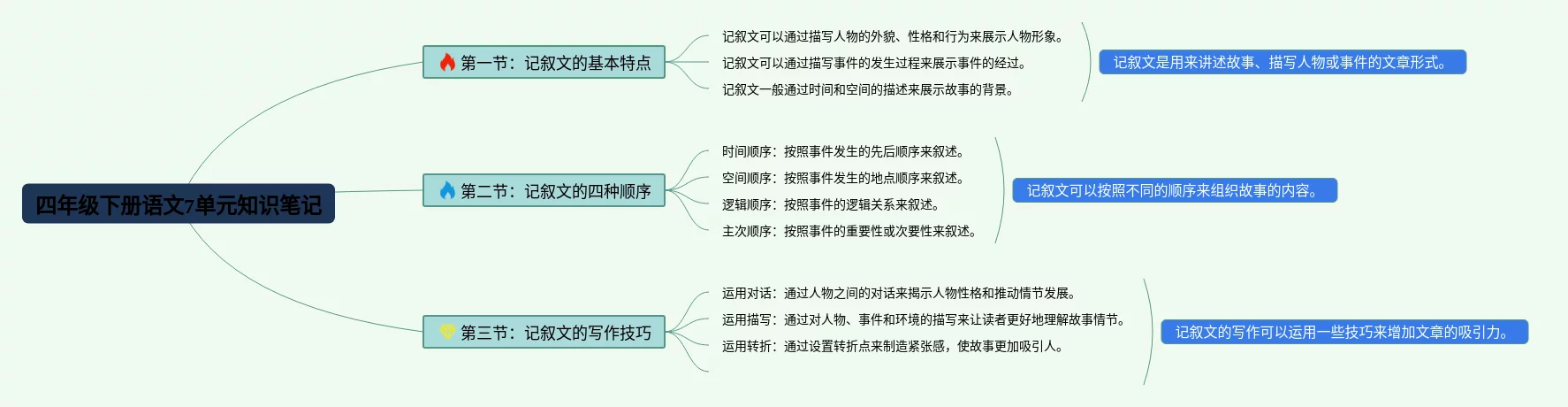四年级下册7单元思维导图(24张附打印高清版)