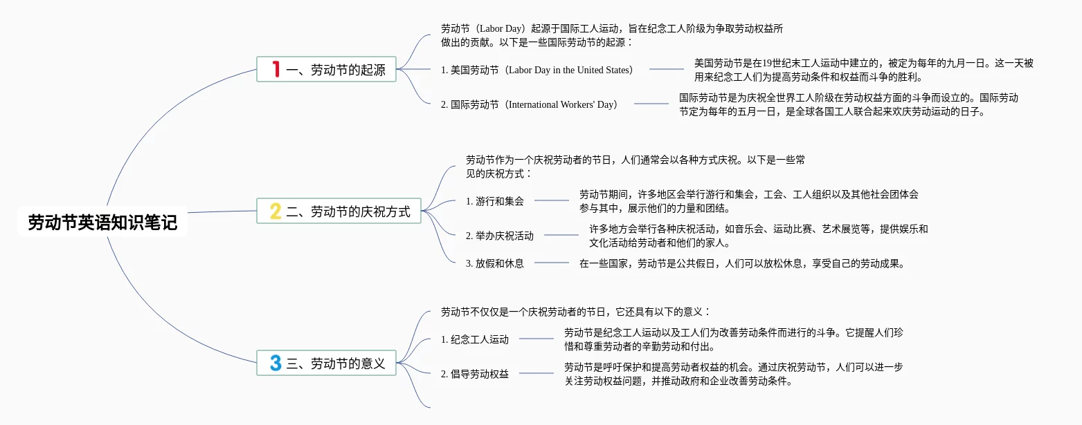 25张劳动节英语思维导图汇总,劳动节英语思维导图,内容涵盖劳动节的由来、劳动节的意义等2个方面,25张值得收藏,每张思维导图都非常漂亮,每张图片均值得收藏。