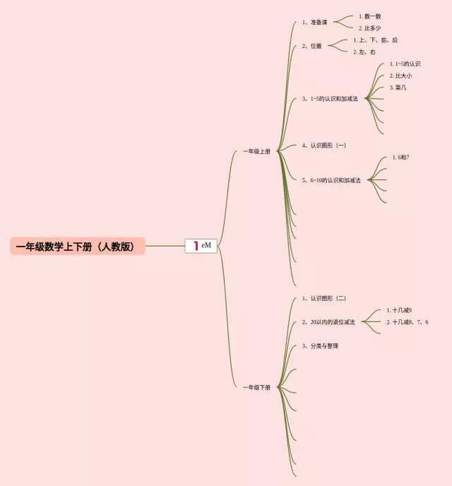 人教版一年级下册思维导图合集,人教版一年级数学下册思维导图,内容涵盖一年级上册、一年级下等2个知识点,20张高清版,每张思维导图都非常简单,每张图片均高清版。