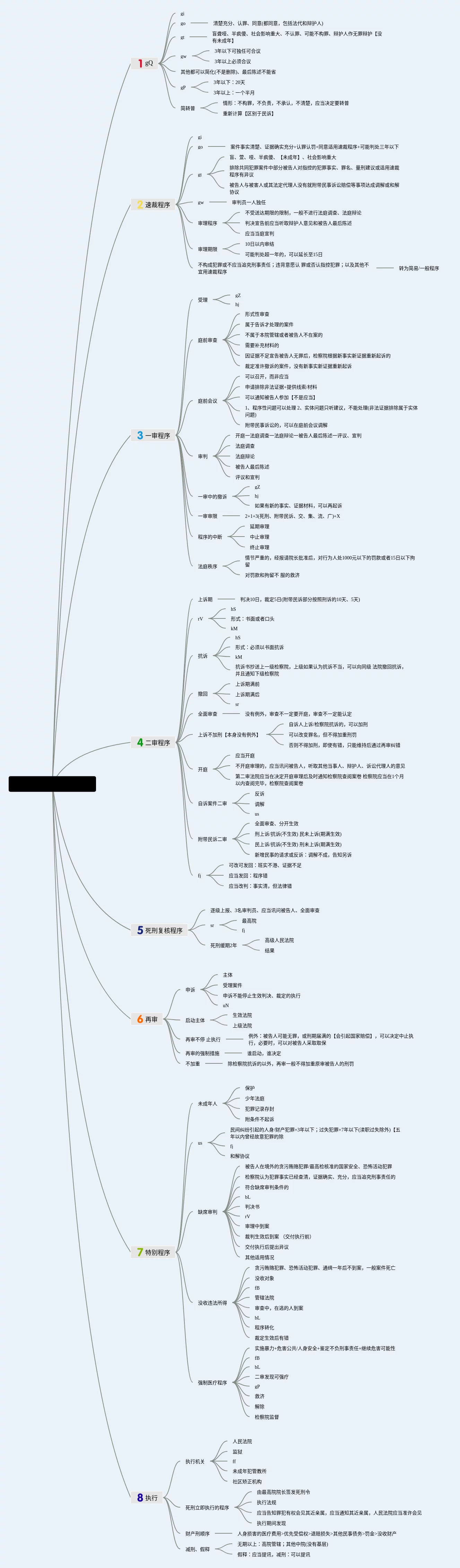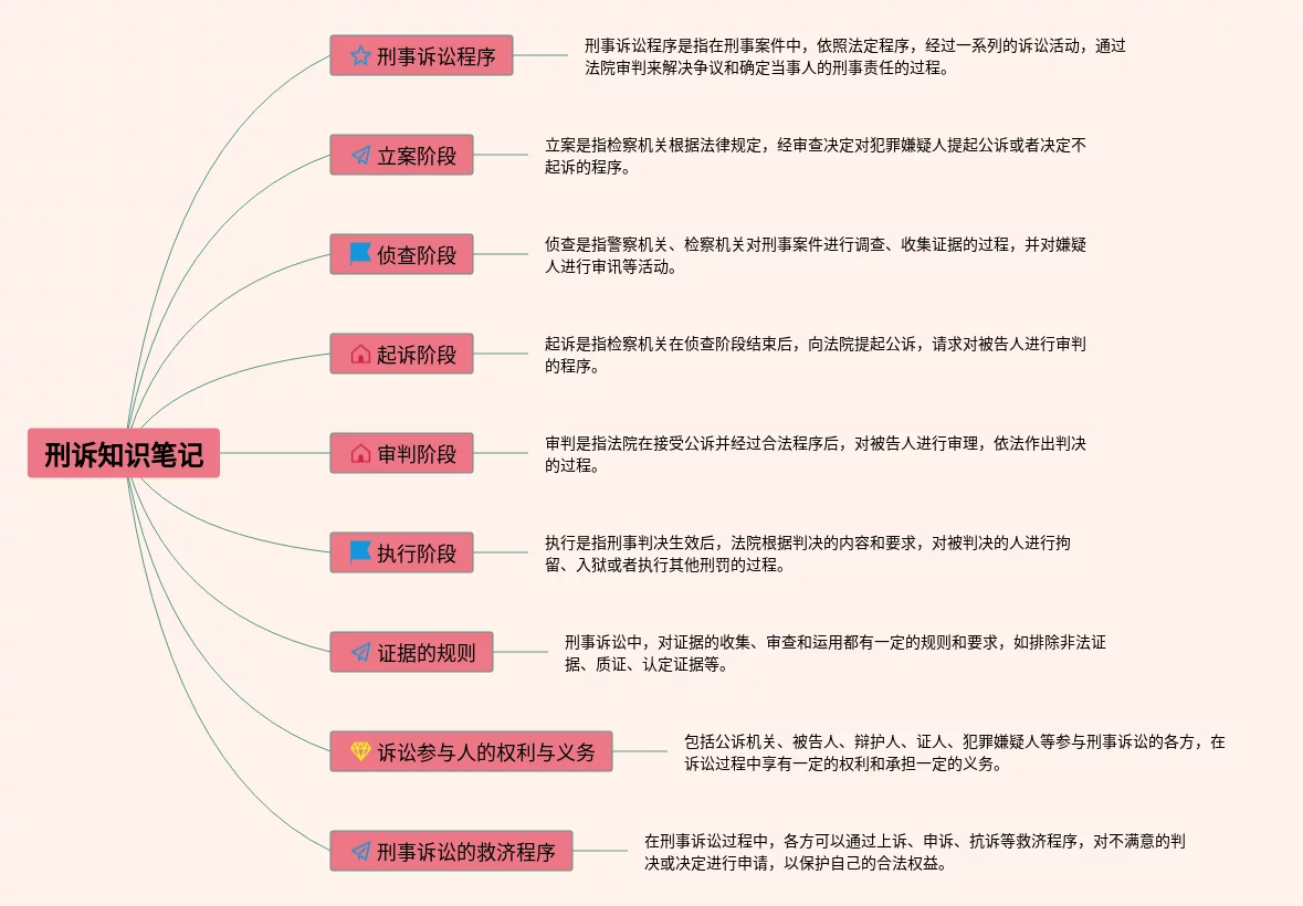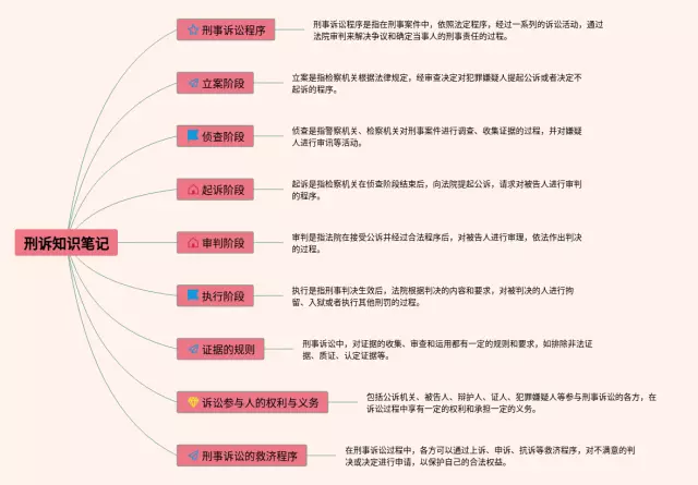 24张刑诉思维导图汇总,刑诉思维导图,内容涵盖刑诉基本概念、刑事诉讼的程序、证据的收集与使用、辩护权、刑事诉讼的救济制度等5个部分,24张高清晰可打印,每张思维导图都非常漂亮,每张图片均高清晰可打印。