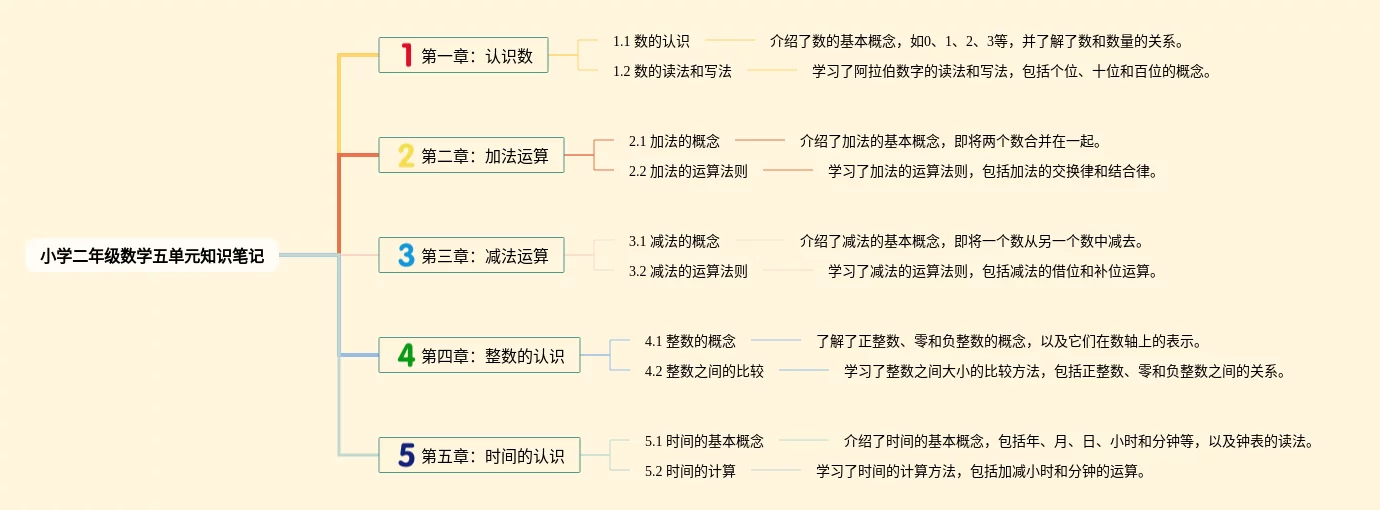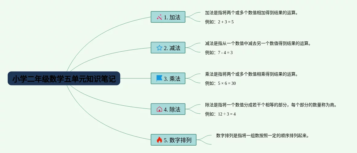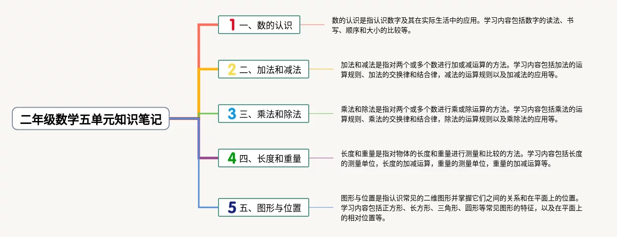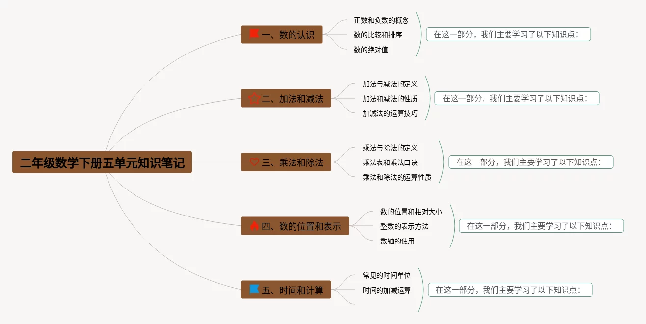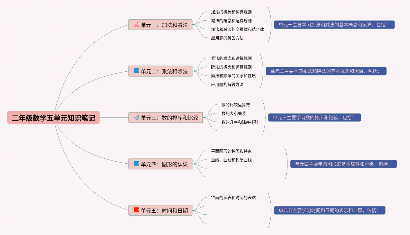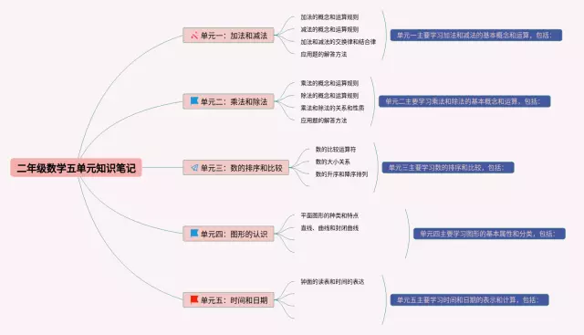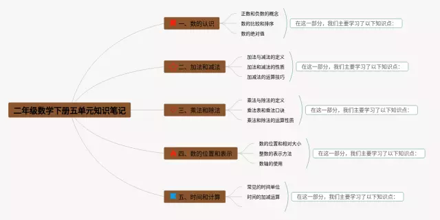 二年级数学五单元思维导图怎么画(23张可下载)