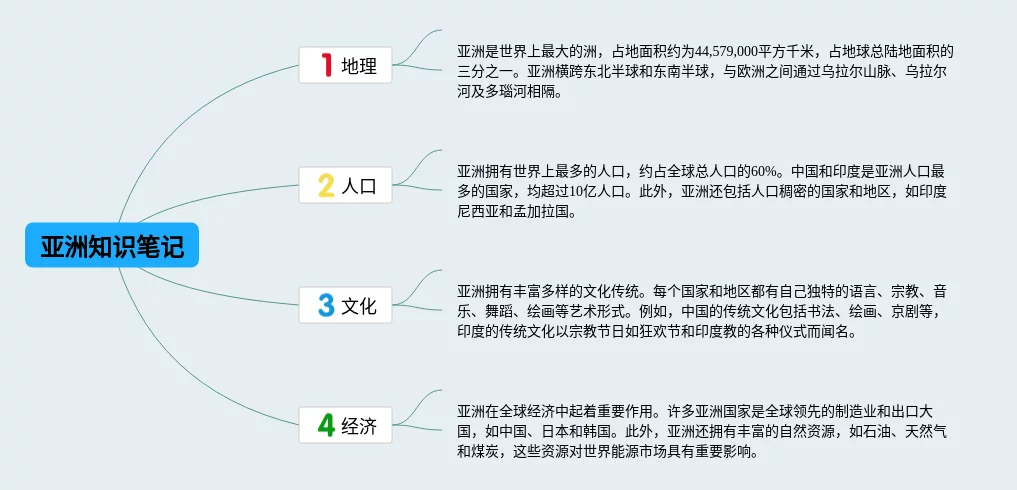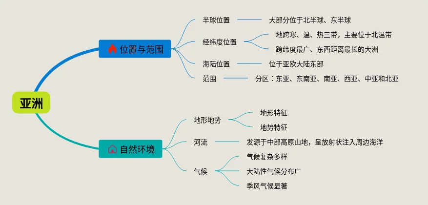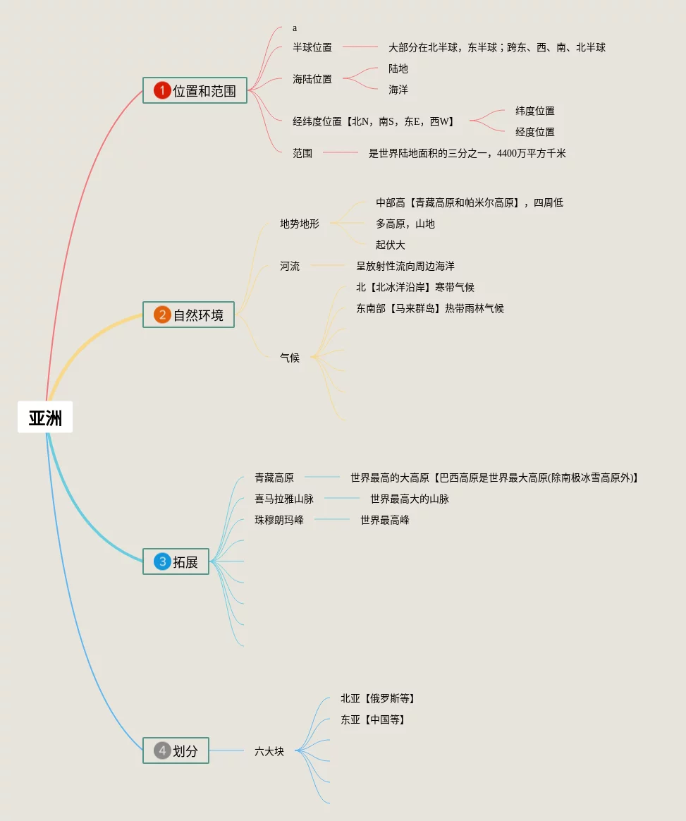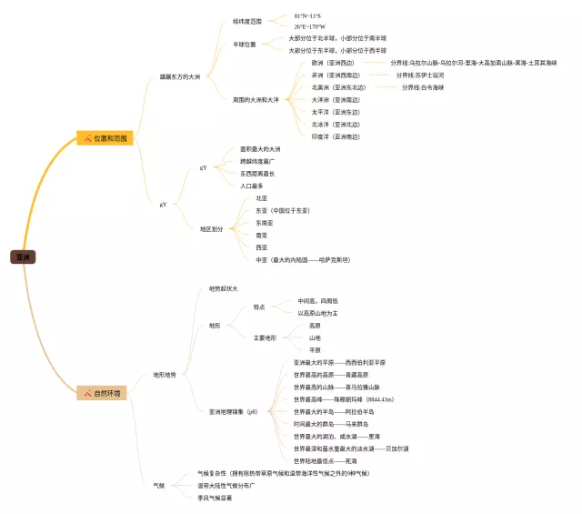 25张关于亚洲的思维导图汇总,关于亚洲的思维导图,内容涵盖位置和范围、自然环境等2个知识点,25张精选版,每张思维导图都非常简单,每张图片均精选版。