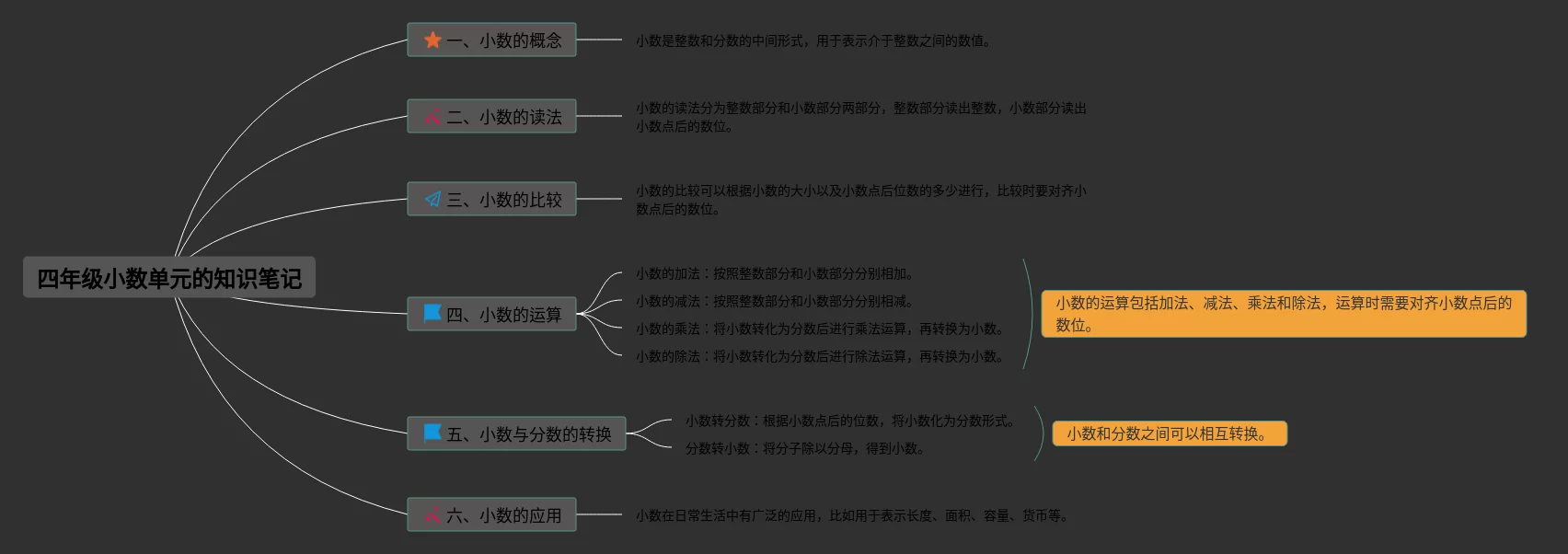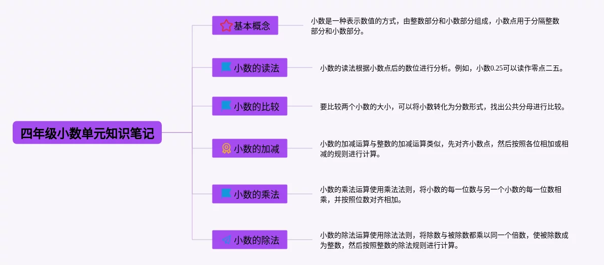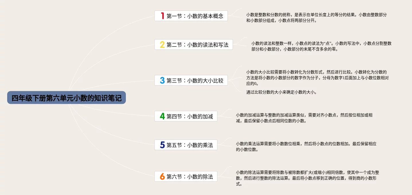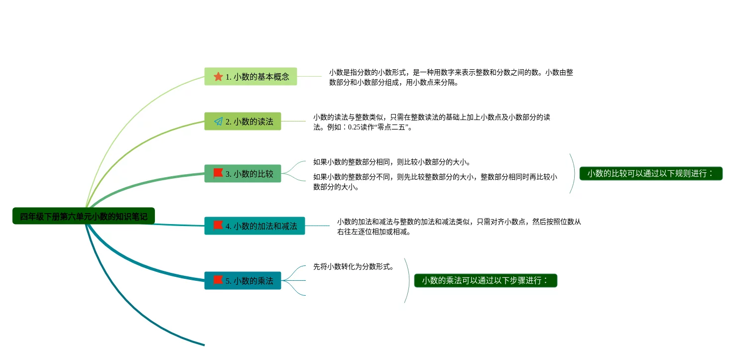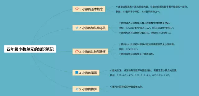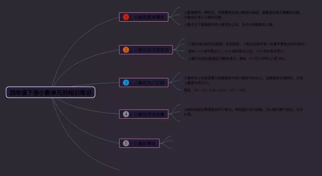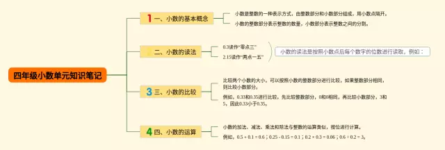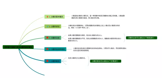 24张四年级小数单元的思维导图汇总,四年级小数单元的思维导图,内容涵盖第一节小数的基本概念、第二节小数的读法和写法、第三节小数的大小比较、第四节小数的加减、第五节小数的乘法等6个方面,24张值得收藏,每张思维导图都非常清晰,每张图片均值得收藏。