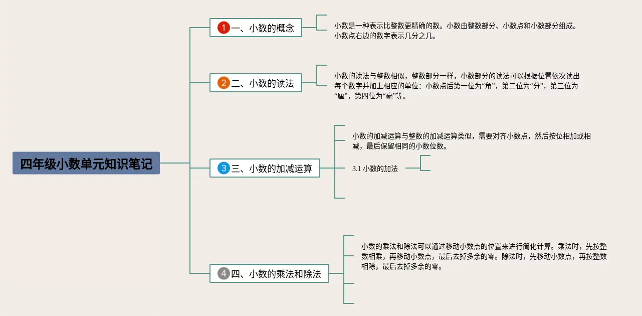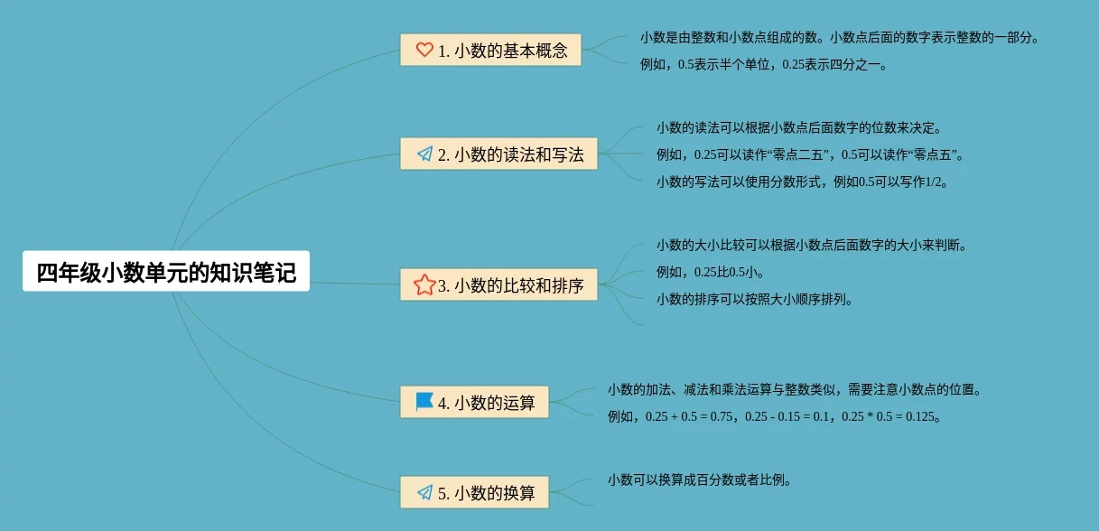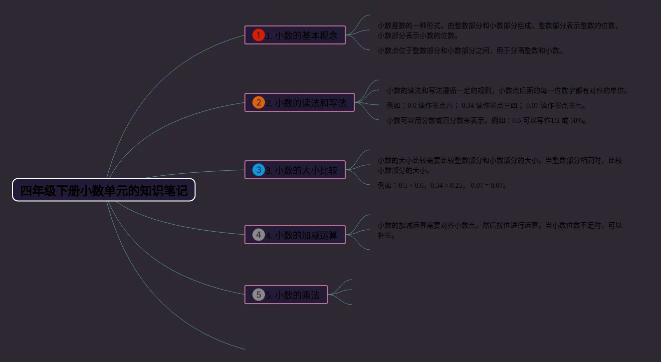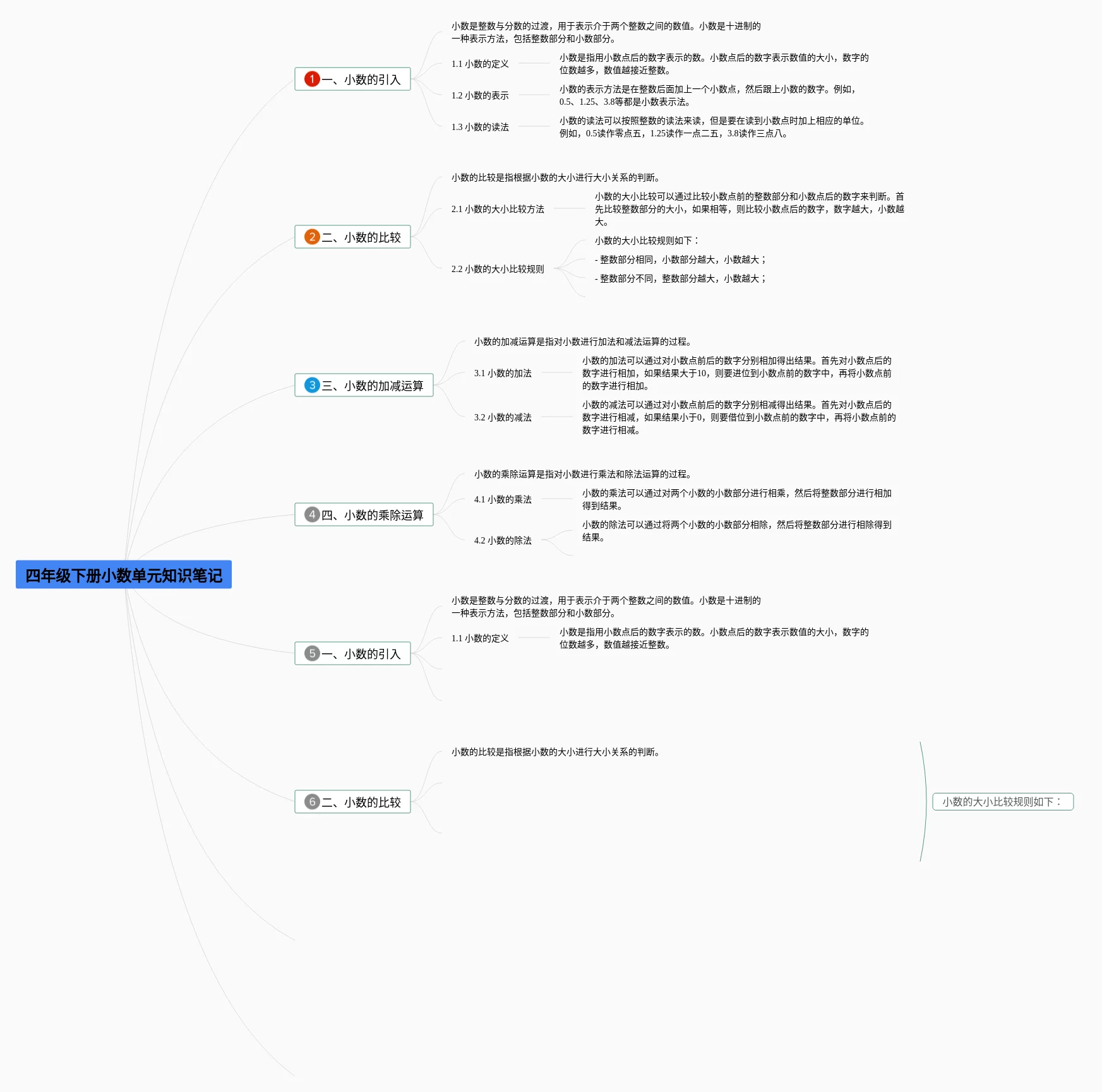 24张四年级小数单元的思维导图汇总,四年级小数单元的思维导图,内容涵盖第一节小数的基本概念、第二节小数的读法和写法、第三节小数的大小比较、第四节小数的加减、第五节小数的乘法等6个方面,24张值得收藏,每张思维导图都非常清晰,每张图片均值得收藏。