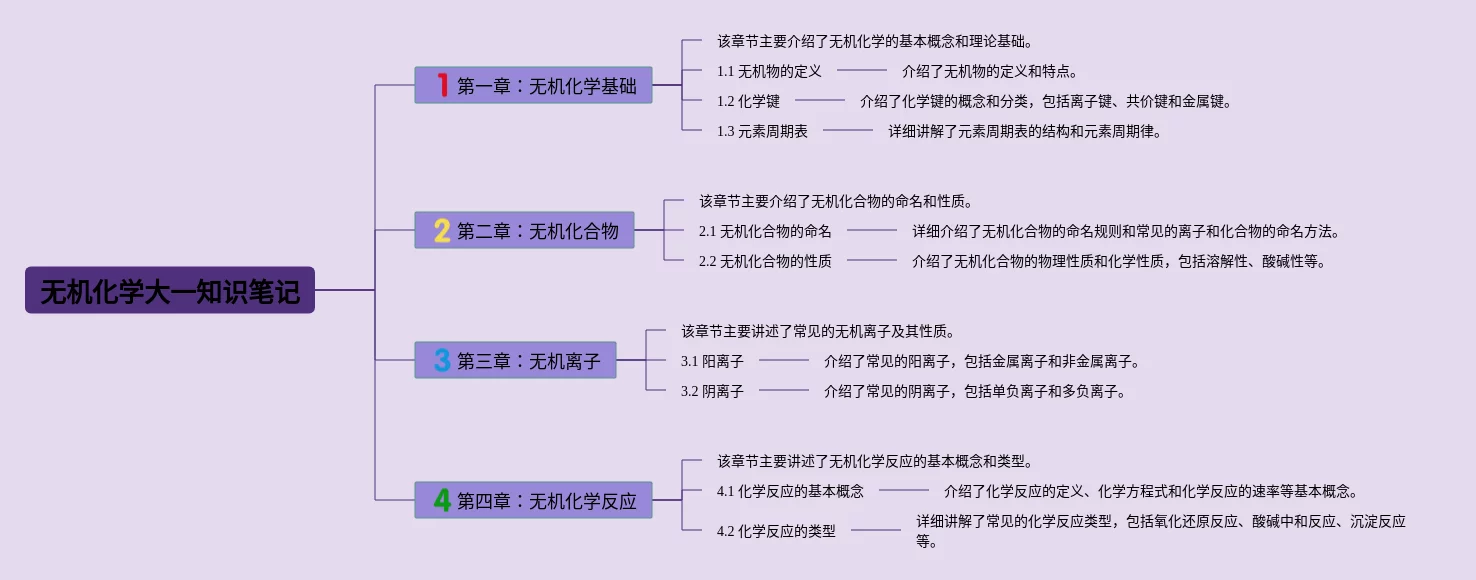 21张无机化学大一知识点总结思维导图汇总,无机化学大一知识点总结思维导图,内容涵盖第一章无机化学基础、第二章无机化合物、第三章无机离子、第四章无机化学反应等4个知识点,21张附下载,每张思维导图都非常漂亮,每张图片均附下载。