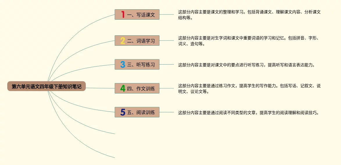 21张四年级下册语文第六单元思维导图.合集,四年级下册语文第六单元思维导图.,内容涵盖课文精读、课文默写、词语解释、练习题、其他学习资源等5个方面,21张高清版,每张思维导图都非常简单,每张图片均高清版。