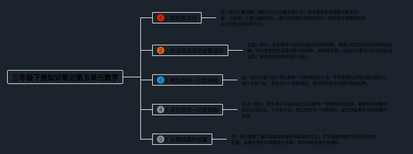 三年级下册第五单元思维导图合集,思维导图三年级下册第五单元数学,内容涵盖加减法运算、进位与退位、练习题等3个知识点,23张值得收藏,每张思维导图都非常漂亮,每张图片均值得收藏。