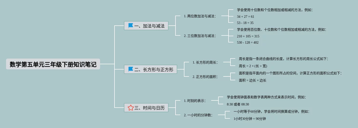 思维导图三年级下册第五单元数学(23张值得收藏)