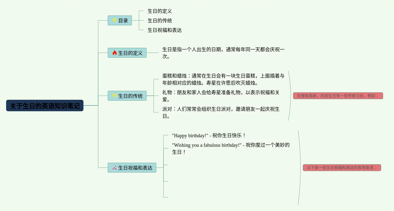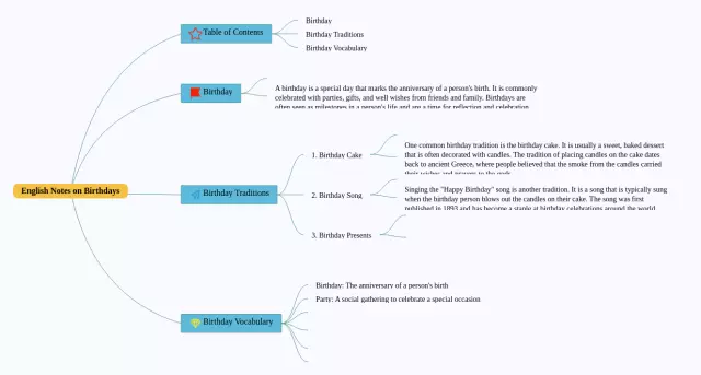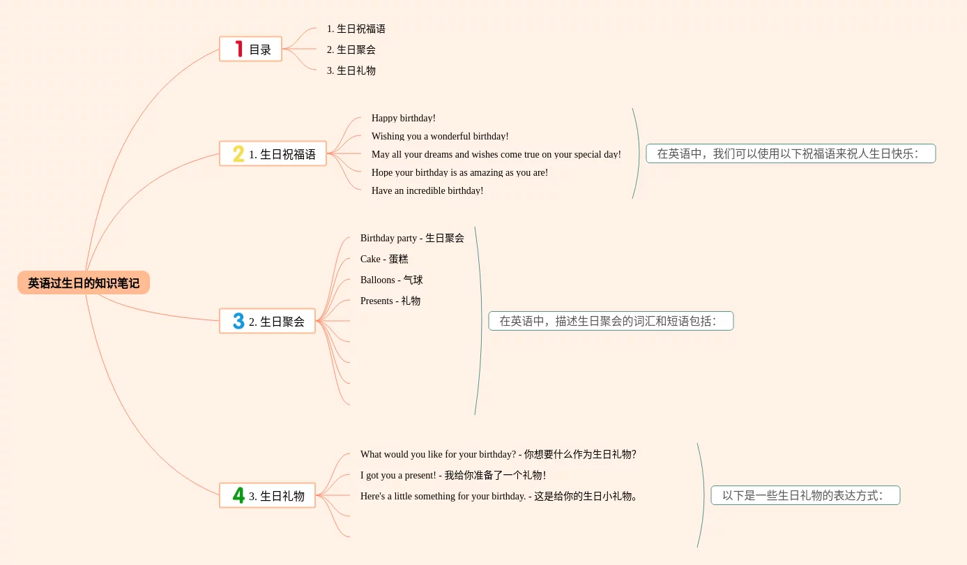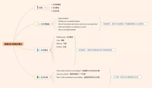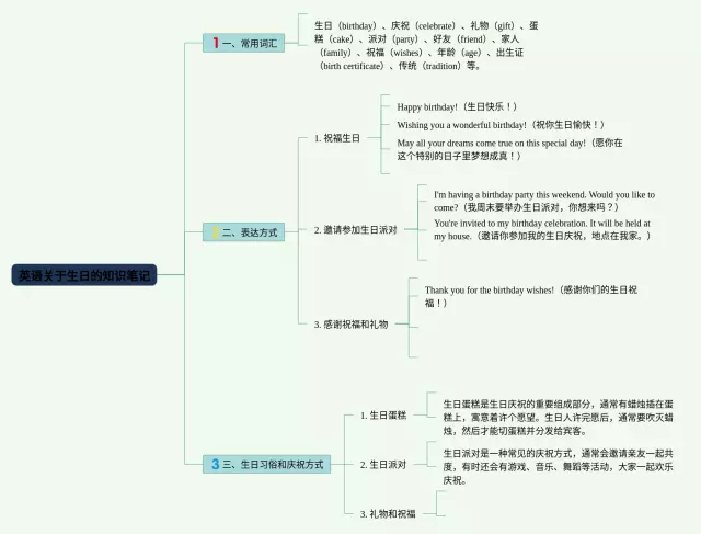 22张英语过生日的思维导图汇总,英语过生日的思维导图,内容涵盖生日的意义、表达祝福、生日习俗等3个部分,22张高清版,每张思维导图都非常漂亮,每张图片均高清版。