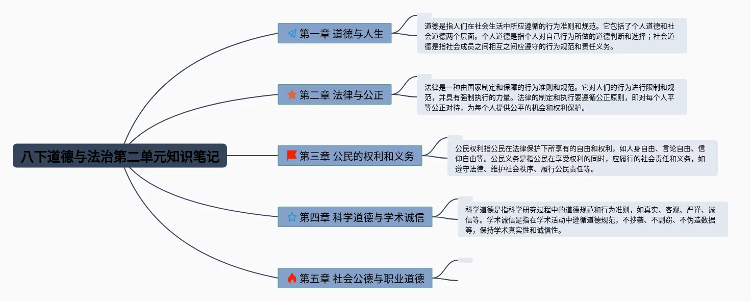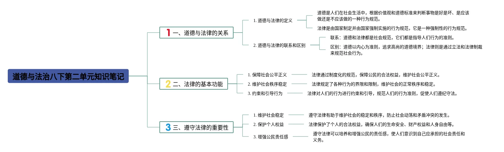 24张八下道德与法治思维导图第二单元合集,八下道德与法治思维导图第二单元,内容涵盖第一章 道德与法律、第三章 道德与法律的关系等2个部分,24张可下载,每张思维导图都非常漂亮,每张图片均可下载。