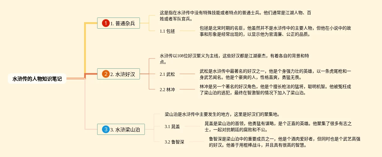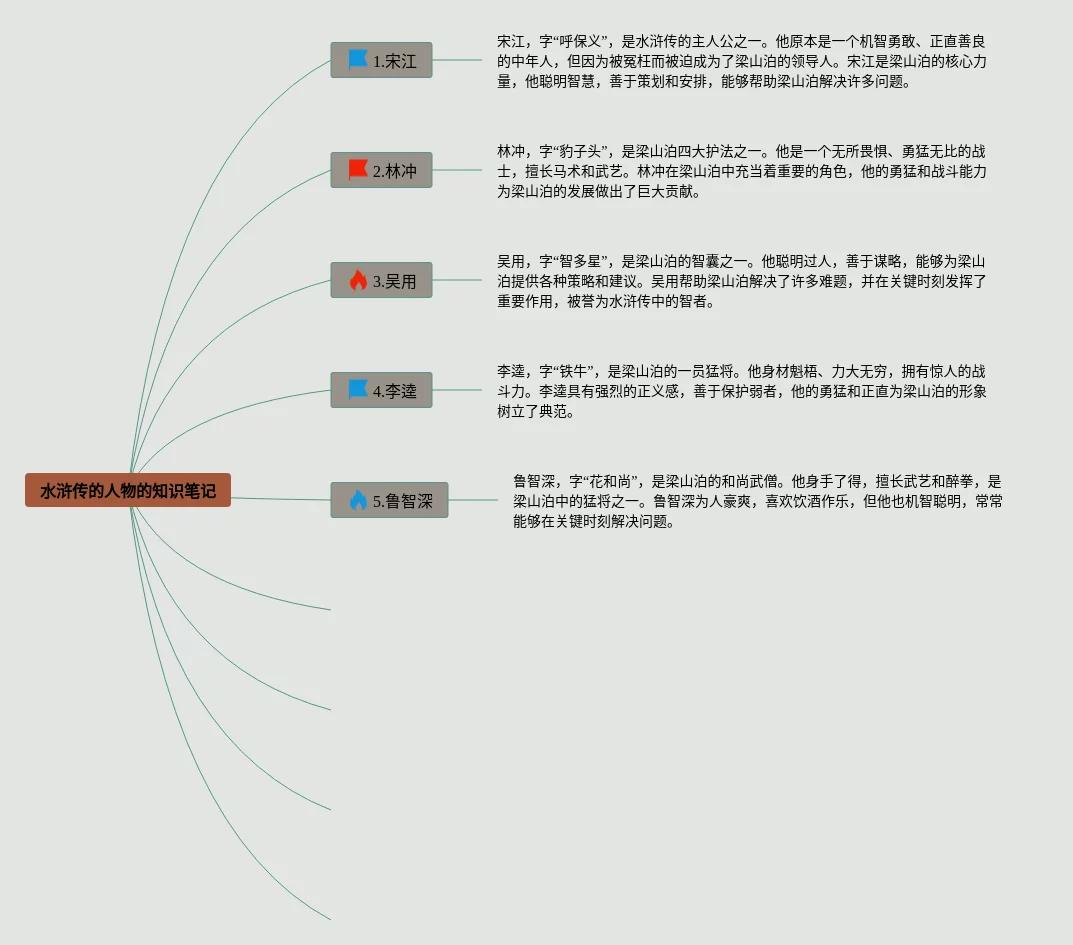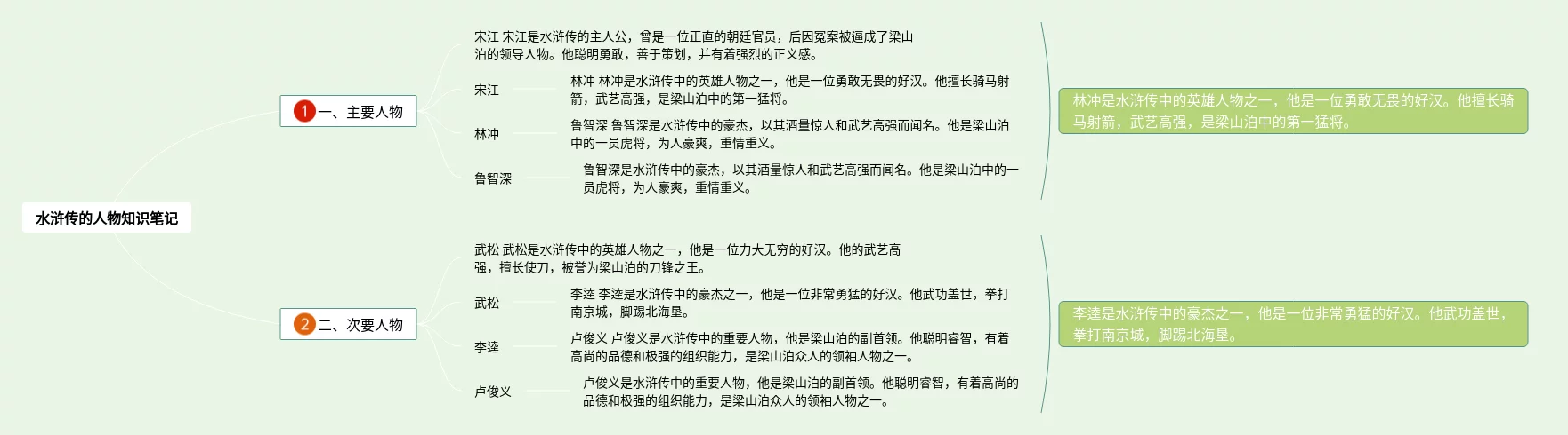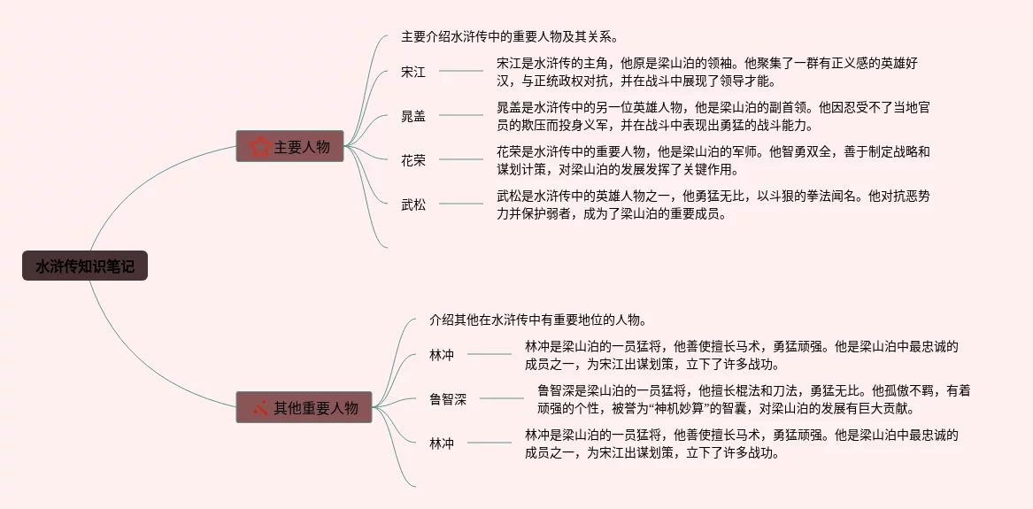 21张水浒传的人物关系思维导图汇总,水浒传的人物关系思维导图,内容涵盖1.宋江、2.林冲、3.吴用、4.李逵、5.鲁智深等9个方面,21张可下载,每张思维导图都非常清晰,每张图片均可下载。