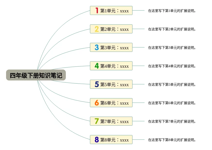 22张四年级下册1至6单元的思维导图合集,四年级下册1至6单元的思维导图,内容涵盖第一单元整数、第二单元分数、第三单元小数、第四单元面积、第五单元容量和质量等6个部分,22张可下载,每张思维导图都非常简单,每张图片均可下载。