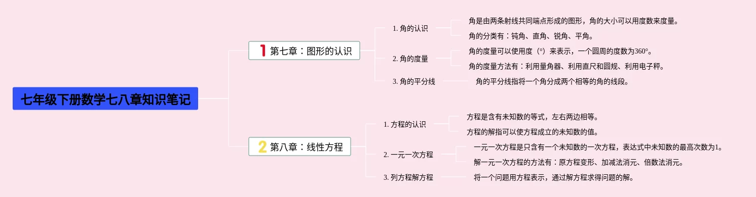 20张七年级下册数学七八章思维导图合集,七年级下册数学七八章思维导图,内容涵盖第七章图形的认识、第八章线性方程等2个部分,20张附下载,每张思维导图都非常简单,每张图片均附下载。