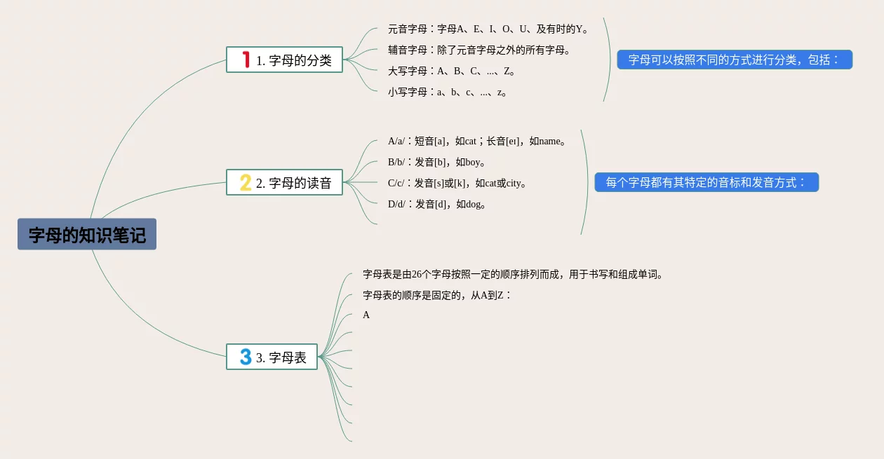 24张字母的思维导图合集,字母的思维导图,内容涵盖1. 字母的分类、2. 字母的读音、3. 字母表等3个部分,24张精选版,每张思维导图都非常清晰,每张图片均精选版。