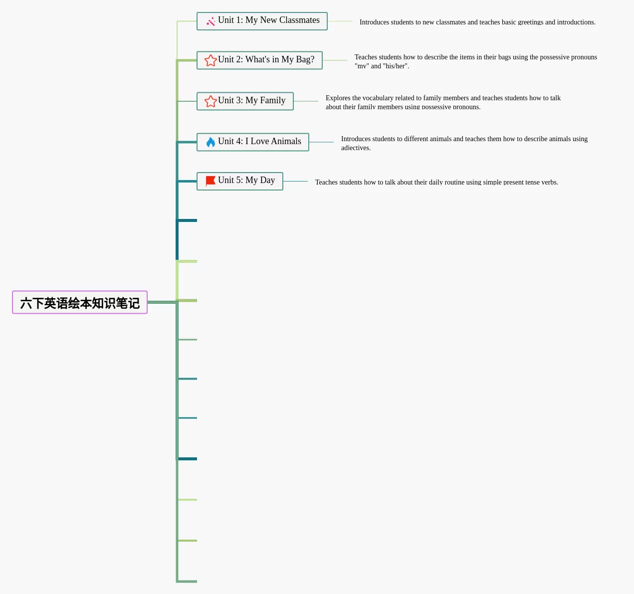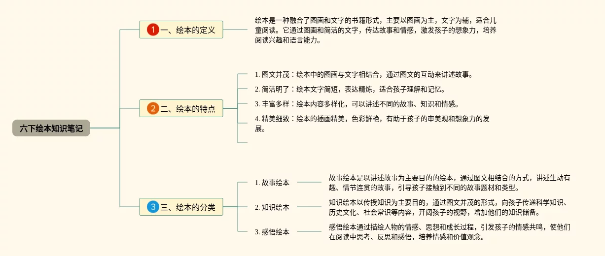 24张六下绘本思维导图合集,六下绘本思维导图,内容涵盖绘本阅读、绘本能带来什么、读懂绘本、教学引导、教学手段等5个部分,24张可打印,每张思维导图都非常漂亮,每张图片均可打印。