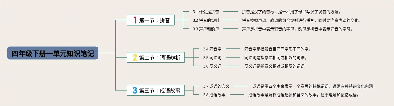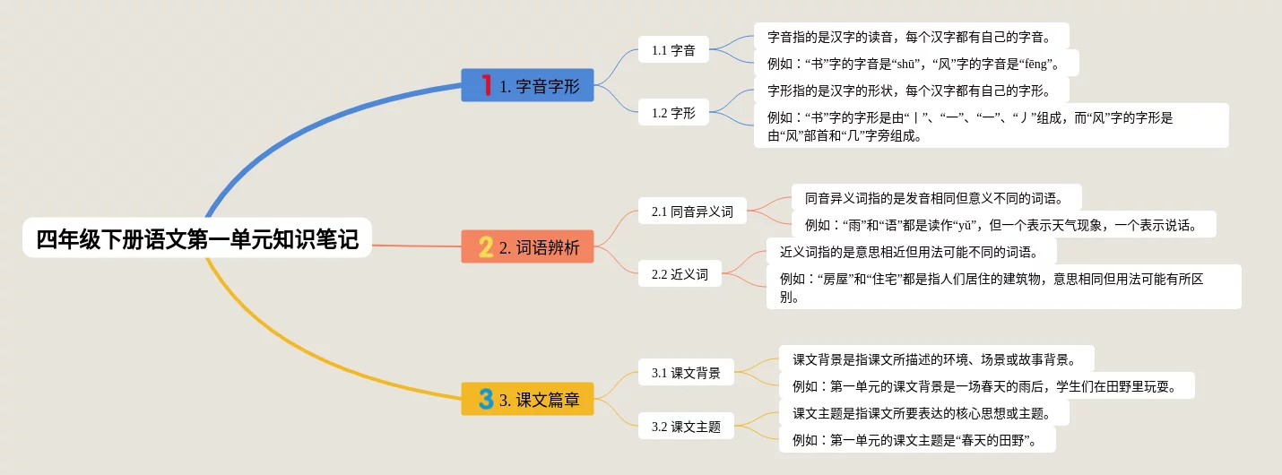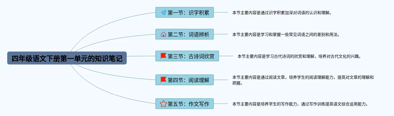 语文四年级下册一单元的思维导图(24张可打印)