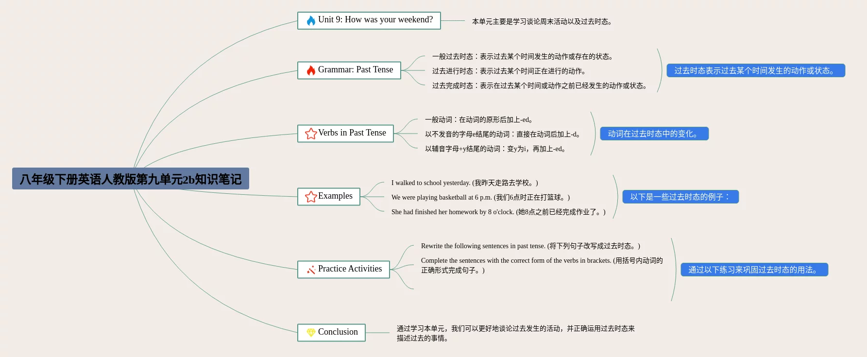 人教版八年级下册第九单元思维导图合集,八年级下册英语人教版第九单元思维导图,内容涵盖第一章单词、第二章句子、第三章时态等3个部分,25张附下载,每张思维导图都非常简单,每张图片均附下载。