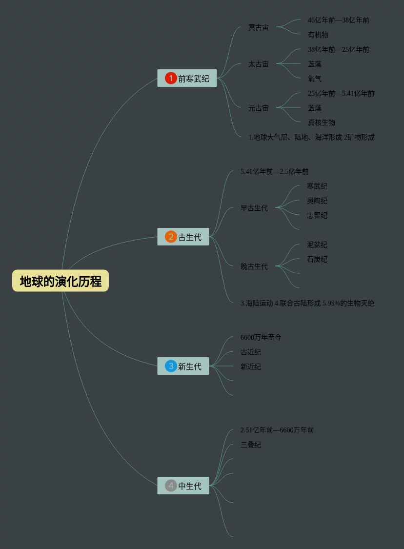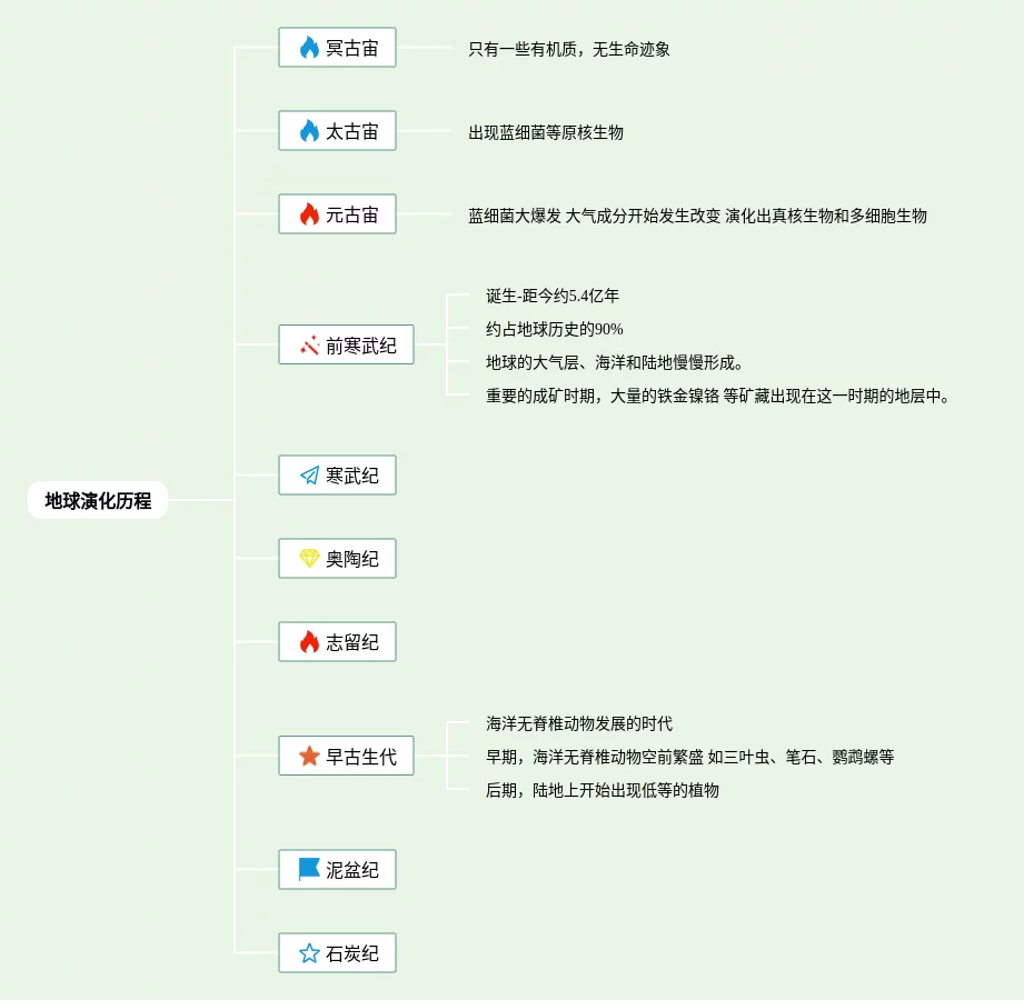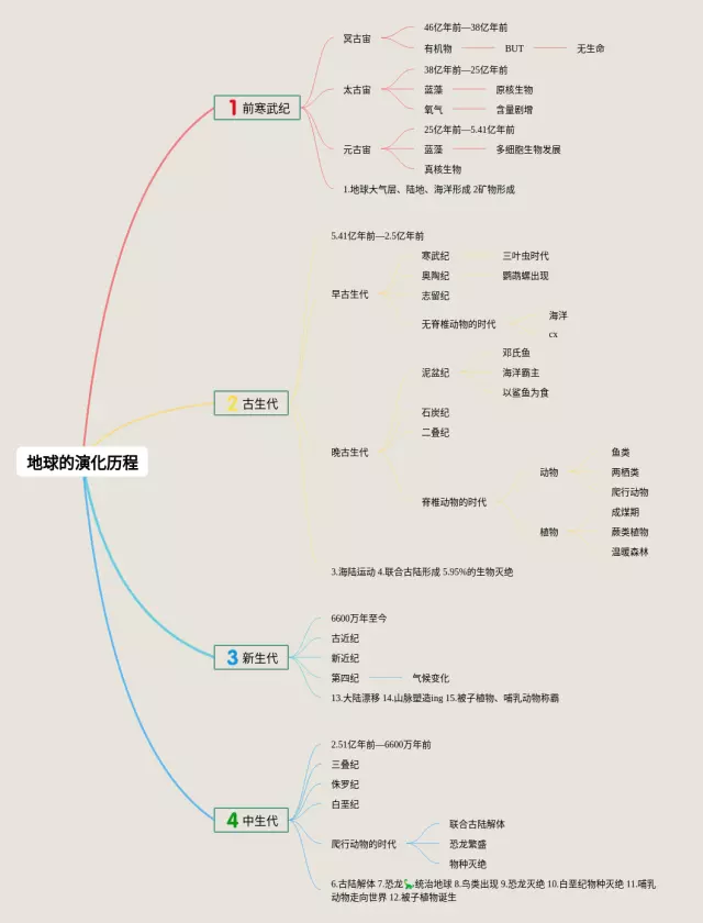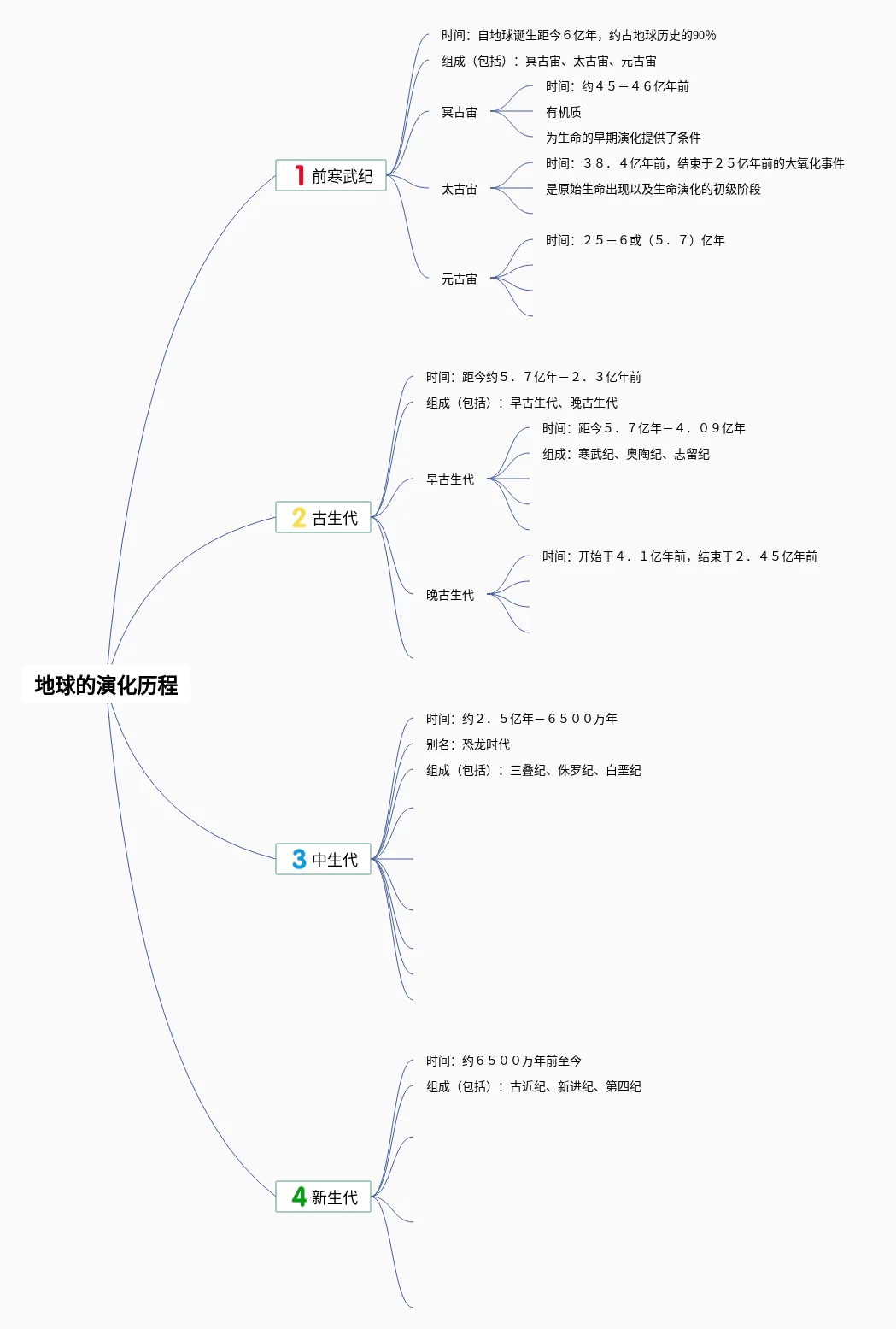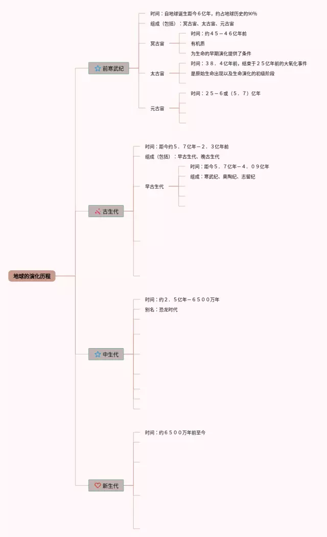 24张地球的演化思维导图合集,地球的演化思维导图,内容涵盖地质年代划分、元古代、太古代、新生代、中生代等6个要点,24张可打印,每张思维导图都非常清晰,每张图片均可打印。