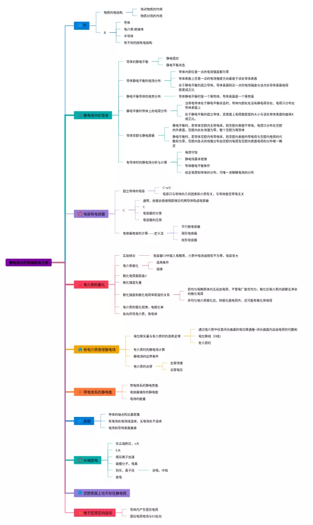 20张静电场中的导体和电介质思维导图汇总,静电场中的导体和电介质思维导图,内容涵盖导体的静电平衡条件、电容器极其电容等2个要点,20张精选版,每张思维导图都非常漂亮,每张图片均精选版。