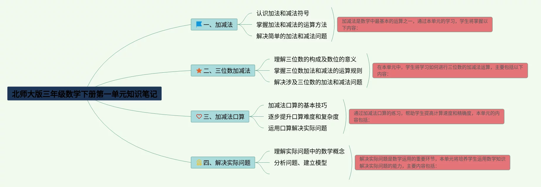 三年级下册北师大版第一单元思维导图(24张可下载)
